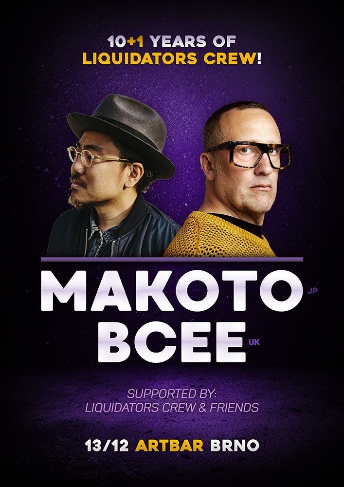 Před rokem to nevyšlo, tak letos místo desetiletého výročí oslavíme rovnou jedenáct! Jedenáct let, co v Brně děláme mejdany jako Liquidators Crew, jedenáct let, co šíříme liquidový vibe do všech koutů ČR (a občas i dál), jedenáct let nezapomenutelných vzpomínek a zážitků, ze kterých jsme za těch jedenáct let už spoustu zase zapomněli A jak líp oslavit takovou příležitost, než pozváním dvou liquid funkových legend - BCeeho s Makotem - a uspořádáním dalšího mejdanu?! Tak to přijďte oslavit s námi! HEADLINERSBCee (UK) - Spearhead, Liquicity, UKF Music, Fokuz RecordingsMakoto (JP) - Human Elements, Hospital Records, Liquicity, V Recordings SUPPORT DJsTBA (Liquidators Crew & Friends) TWO STAGESMain RoomKlubovna Stage START: 21:00 🕙 END: ??:00