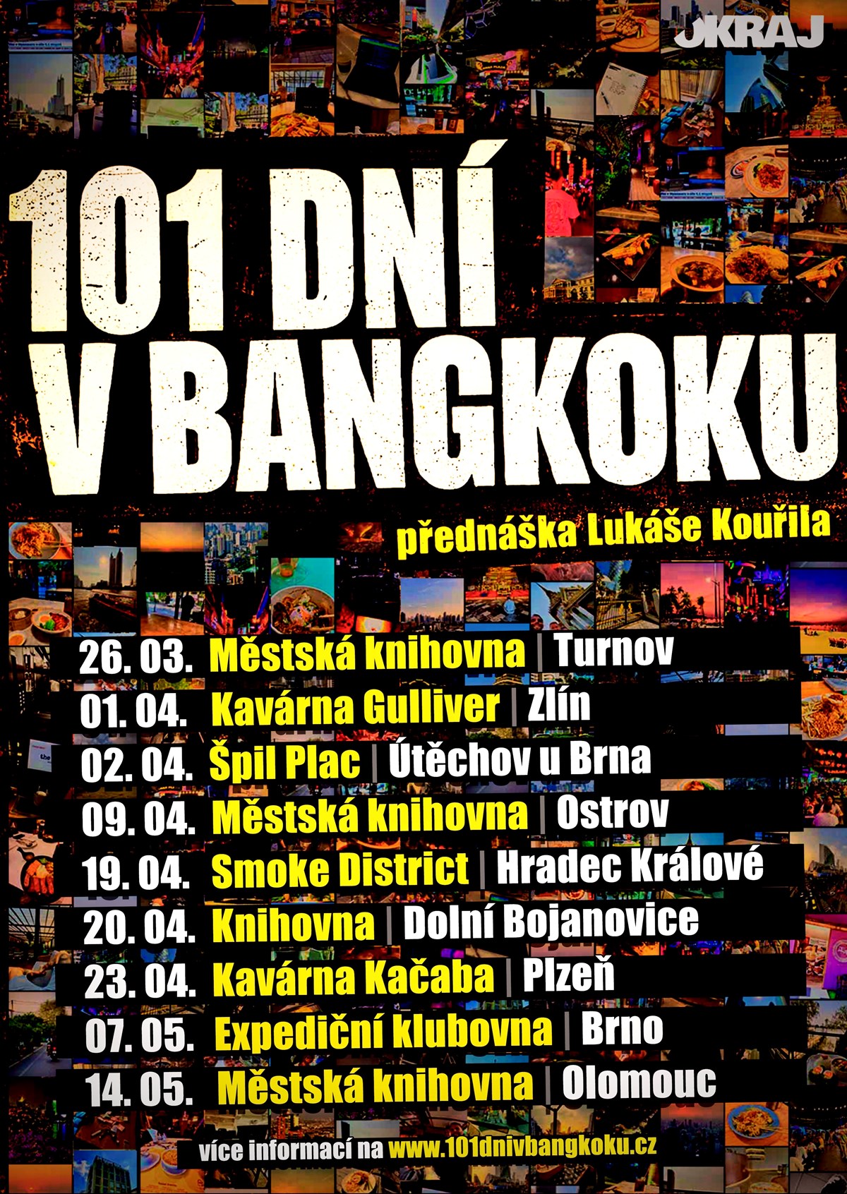 101 dní v BangkokuTaky jste někdy chtěli jen tak sbalit všechno do batohu a odletět na druhý konec světa s plánem začít úplně od nuly?Přednáška 101 dní v Bangkoku je osobní příběh o hledání sebe sama ve městě, které vás testuje každým dnem. O dnech, kdy vás pálí plíce už při cestě na snídani, protože kvalita ovzduší patří k těm nejhorším na světě. O chvíli, kdy se městem prožene zemětřesení a vy sedíte na chodníku před domem, který jste si zrovna na půl roku pronajali, zatímco se vedle něj houpe naprasklý mrakodrap, ale taky o tom, jak se v tomhle neonovými-barvami-vibrujícím chaosu naučit fungovat, nezbláznit se, a hlavně se do toho města naplno zamilovat a naučit se v něm užít každý den.Tímhle vás zvu na svou syrovou zpověď o digitálním nomádství bez filtru a budu moc rád, když si ji přijdete poslechnout.Lukáš Kouřil101dnivbangkoku.cz