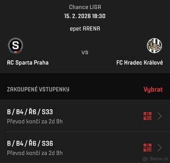 Dva listky na prvni jarni zapas na Letne. QRka dostanu dvě hodiny pred vykopem, takze bud poslu nebo se muzem sejit pred vchodem. Cena za obe. Piste, jsem za volantem. :)