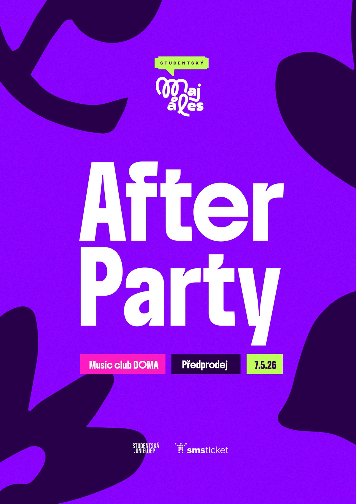 Zakoupením vstupenky podpoříte akci Studentský Majáles 2026.Studentským Majálesem zábava samozřejmě nekončí! Všechny vás zveme na nadupanou After party.Akce proběhne 7. května 2026 v music pubu DOMA v Ústí nad Labem po Studentském Majálese 2026. Těšit se můžete na top DJs, speciální stage design, nudupané efekty, zvuk a další překvapení.!! Pozor v prodeji je pouze 500 vstupenek !!Link na událost: ZDETak co? Jsi ready s námi zakončit letní semestr jak jinak než ve stylu? My ano! Těšíme se na vás ve čtvrtek 7.5. od 22:00 v music pubu DOMA.Sledujte sociální sítě Studentské unie UJEP, ať Vám neunikne žádné info.Vaše Studentská unie UJEP.! Vstup na After party bude povolen pouze osobám starším 18 let !! Vstupem na After party automaticky souhlasíte s pořizováním a následným zveřejněním fotodokumentace a videodokumentace !