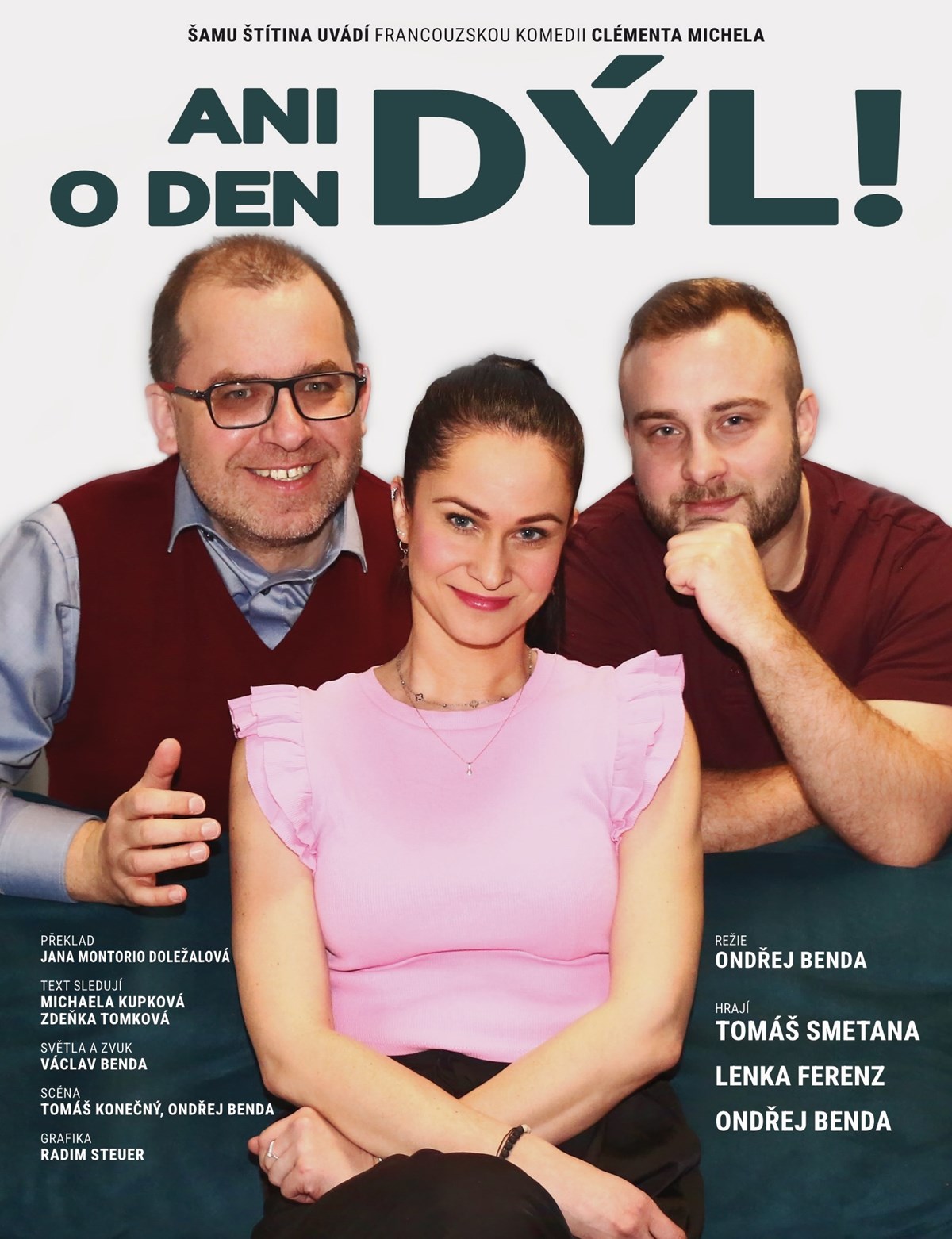 ŠAMU Štítina – Ani o den dýl!Slovo o hře: Jak se zbavit přítelkyně, když nejste dostatečně odvážný muž? Nastěhujte si do bytu nejlepšího kamaráda!Pavel se jednoho dne probudí s pocitem, že se musí zbavit přehnaně milující přítelkyně. Rozhodne se, že Sofii dostane z bytu tak, aby měla pocit, že se pro odchod rozhodla sama z vlastní vůle.Namluví ji, že jeho přítel Martin ztratil matku, psychicky to nezvládá, a tak nutně potřebuje oporu a přístřeší svého nejlepšího kamaráda. Doufá, že Sofie takovou situaci neunese a odejde....
