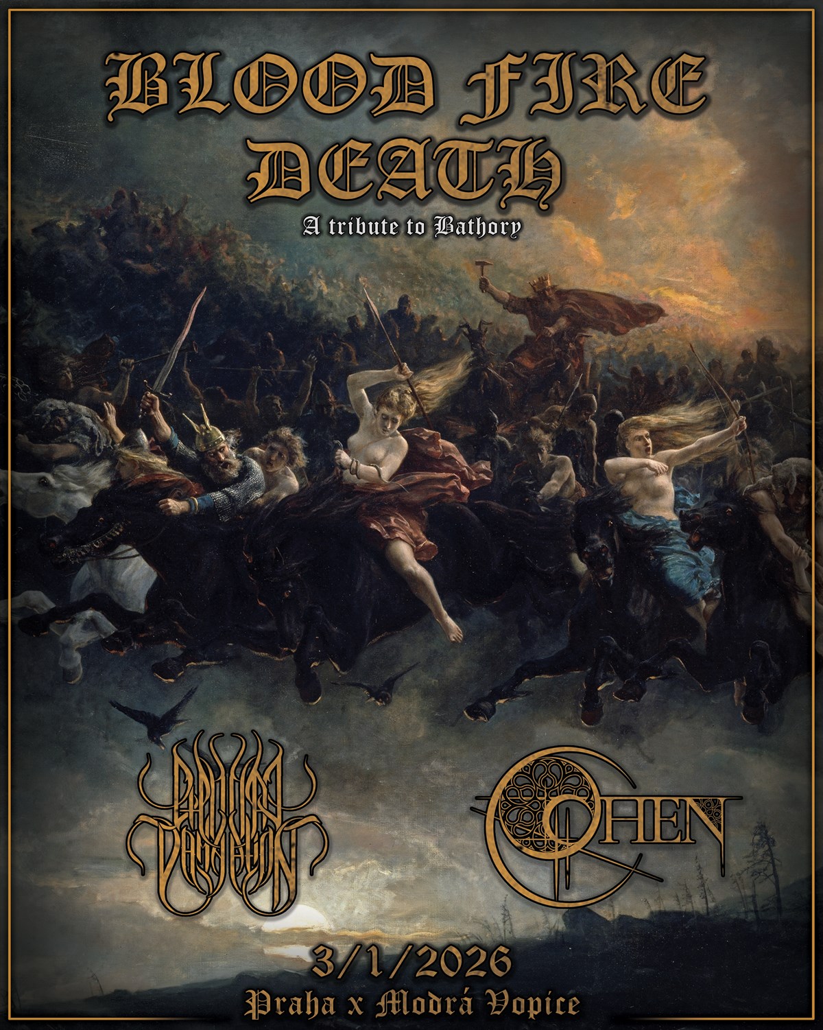 Po úspěšném koncertě v Brně přidáváme také pražskou zastávku!𝐁𝐀𝐓𝐇𝐎𝐑𝐘 - Ikony a průkopníci black metalu. Málokterá kapela ovlivnila metalovou scénu tak výrazně jako tento jednočlenný projekt Thomase „Quorthona“ Forsberga, který bohužel v roce 2004 předčasně zemřel. Aniž by byť jen jednou vystoupil naživo, dokázal formovat směřování žánru na dekády.Na prvních vlastnoručně produkovaných nahrávkách formoval black metal, zatímco později se rozpomněl na své kořeny a zaměřil se na mýty kolem severských bohů a Vikingů, což se odrazilo v pozdější, spíše atmosféricky laděné hudbě.𝐁𝐋𝐎𝐎𝐃 𝐅𝐈𝐑𝐄 𝐃𝐄𝐀𝐓𝐇 / DEProjekt vzniklý v roce 2010 a pocházející z oblasti Karlsruhe a Heidelbergu v jižním Německu. S repertoárem čítajícím téměř 35 skladeb z univerza BATHORY se zaměřili především na "vikinskou" éru této legendy a jejich fanouškovská základna od té doby neúprosně rozrůstá. Skladby prezentují pomocí orgánů, akustických kytar a vokálních aranží, věrných původním kompozicím. Pokud chcete zažít všechny významné skladby z desek „Hammerheart“, „Twilight of the Gods“ nebo „Blood on Ice“ naživo, neměli byste si je nechat ujít!https://www.facebook.com/bloodfiredeathtributehttps://www.bloodfiredeath.de/ 𝐄𝐓𝐄𝐑𝐍𝐀𝐋 𝐃𝐀𝐌𝐍𝐀𝐓𝐈𝐎𝐍 / Black metal / CZhttps://www.facebook.com/eternaldamnationband 𝐎𝐇𝐄𝐍 / Blackened dark metal / SKhttps://www.facebook.com/ohen.band