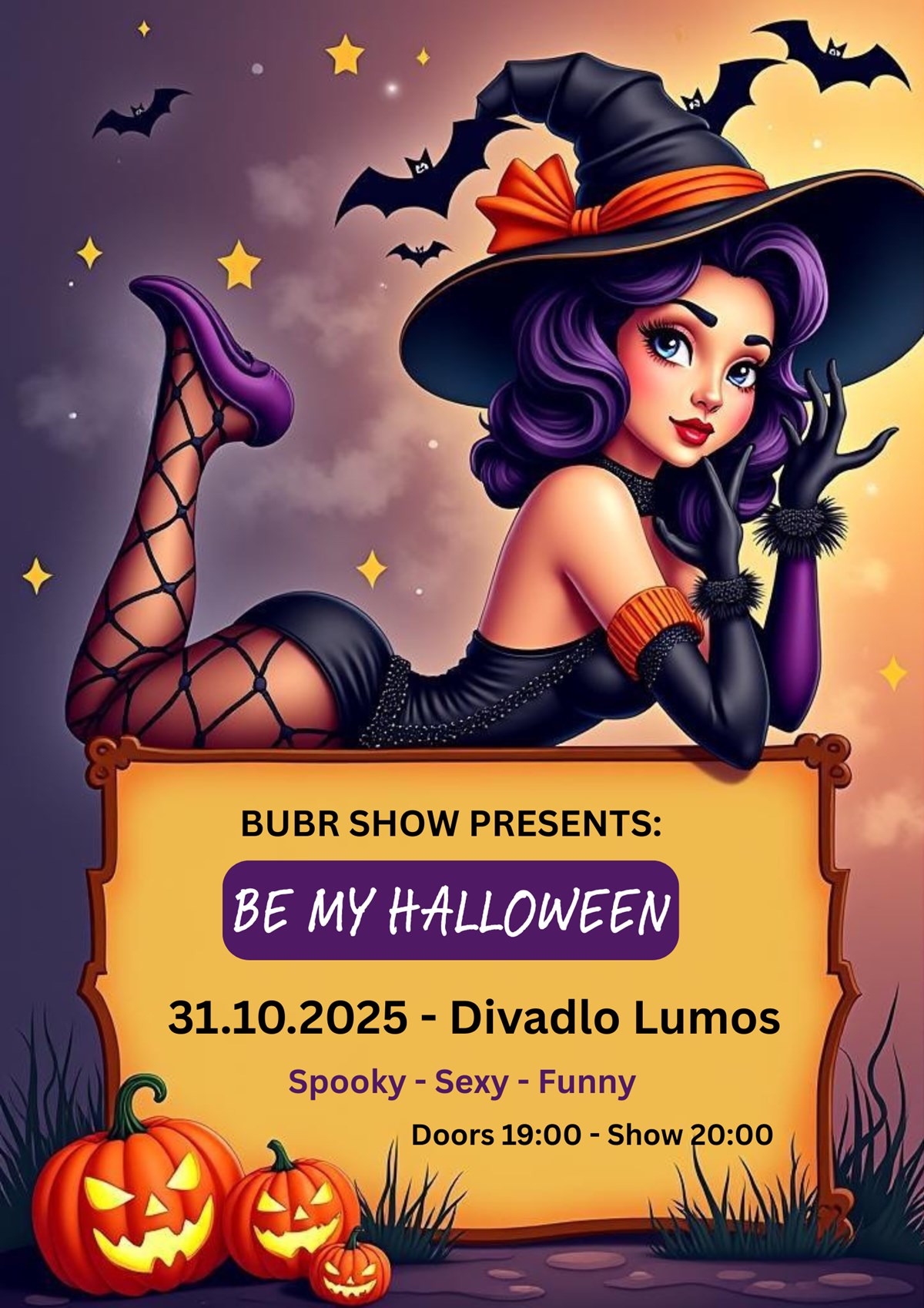 Když se Brno ponoří do tmy a ulice začnou šeptat své příběhy, otevírá se brána do světa, kde burleska rozechvívá noc. BE MY HALLOWEEN není jen show – je to fantazie, která Vás pohltí.Na scéně se střídá smích s napětím, krása s groteskou, něha s odvahou. Hudba duní a světla blikají jako tep zrychleného srdce.A Vy? Nejste jen diváci v hledišti. Můžete být součástí kouzla... vtahování do hry, kde hranice mizí a každý pohled může změnit příběh.Těšte se na noc, kdy třpyt maskuje temnotu a umělci odhalují víc než tělo - tajné sny, touhy i fantazie...Svůdné kostýmy a hravá provokace se mísí v jednom okamžiku, který existuje jen tady a teď.BE MY HALLOWEEN - magické, vzrušující divadlo, kde je hranice mezi pódiem a publikem tenčí než kdy dřív.Kdy: 31.10.2025, 20:00 hod. Kde: Lumos, BrnoDresscode: Halloween - soutěž o nejlepší maskuTěšíme se na Vás!