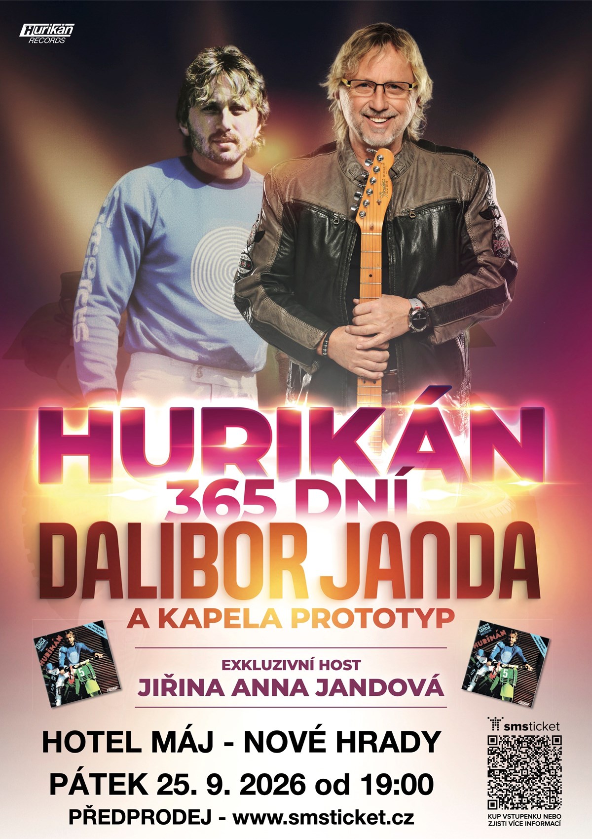 Jako zpívající autor patří trojnásobný Zlatý slavík Dalibor Janda k nejnápaditějším melodikům hlavního proudu naší scény populární hudby.Nazpíval více než sto padesát písní, přičemž jde až na pár výjimek výhradně o autorské nahrávky. Zatím vydal třiadvacet alb (včetně kompilací), získal devět Zlatých, dvě Platinové desky a loni v rámci koncertního turné ke svým „70-tinám v pražské Lucerně dokonce Multiplatinovou desku!Z historického pohledu patří Dalibor Janda k našim komerčně vůbec nejúspěšnějším interpretům pop music, když si jeho alba opatřilo více než dva miliony diskofilů.Přijďte si užít Galakoncert "HURIKÁN 365 DNÍ" s největšími hity!!!Vstupné: od 790 do 990 Kč Předprodej od 20. února 2026 TERMÍN KONCERTU - 25. 9. 2026 od 19 hodin
