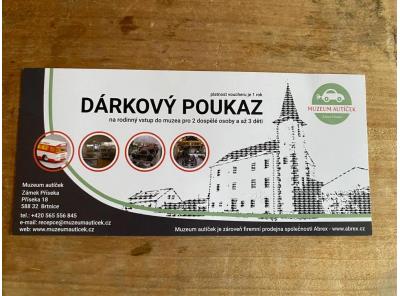 K prodeji Dárkový poukaz do Muzea autíček na zámku PřísekaCena 100 KčPlatnost do prosince 2026