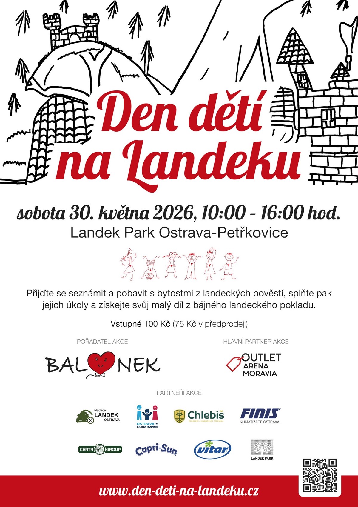 Den dětí na LandekuPřijďte se na Landek seznámit a pobavit s bytostmi z landeckých pověstí jako je landecká paní, landecký rytíř, ovčák a vodníci. Na několika stanovištích v Landek parku jsme si pro vás připravili speciální úkoly.Když pak všechny jejich úkoly splníte, získáte svůj malý díl z bájného landeckého pokladu.Jak bude akce probíhatNa stanovišti u vstupní brány nebo v našem hlavním stanu u sportovního hřiště v Landek parku si zakoupíte vstupenku na akci, vstupné činí 100,- Kč na místě (75,- Kč v online předprodeji před akcí). Vstupné platí pouze děti, dospělí ne. Vstupenky následně vyměníte za barevný pásek Balónek, který si děti připevní na ruku. My tím tak bezpečně poznáme, že s námi dané dítě soutěží.Dostanete také kartičku, na kterou budete sbírat razítka od landeckých bytostí. Razítka obdržíte na jednotlivých stanovištích za splnění úkolů. Pořadí plnění jednotlivých úkolů si můžete sami zvolit příp. si třeba mezi úkoly udělat přestávku na občerstvení apod. Úkoly budou vždy připraveny v několika úrovních obtížnosti, aby je mohly bez problémů plnit malé i velké děti. Jakmile budete mít na kartičce všechna razítka, přijdete si našeho hlavního stanu pro svou odměnu.Celá akce probíhá od 10 do 16 hodin, délka programu je cca 60-90 minut dle rychlosti plnění úkolů. Už mám hotovo, co dál?Pokud již máte všechno hotovo a vyzvedli jste si i svůj malý díl pokladu, máte možnost se volně zapojit do našich tvůrčích dílen u našeho hlavního stanu nebo se zabavit na dalších atrakcích v areálu Landek parku.