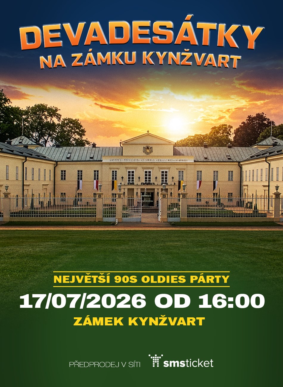 Devadesátky na zámku Kynžvart!Přeneste se zpět do doby kazetových walkmanů, barevných legín a legendárních hitů! Čeká vás večer plný těch největších hitů 90. let v kouzelném prostředí zámku Kynžvart! Taneční parket pod hvězdami, drinky jako za starých časů a atmosféra, která vás vrátí zpět do doby, kdy jsme pařili na Jacksona, Madonu, Haddaway, Snap!, Backstreet Boys, Eiffel 65, Dr. Alban nebo 2 Unlimited. DJs a moderátoři, co rozjedou největší hity 90. letStylová výzdoba a světelná showDresscode vítán: 90's vibes!Bar s tematickými drinkyPřijďte si užít večer, kde se hudební minulost propojí se skvělou atmosférou současné párty – na zámku, který se na jednu noc promění v místo plné hitů, tance a vzpomínek!