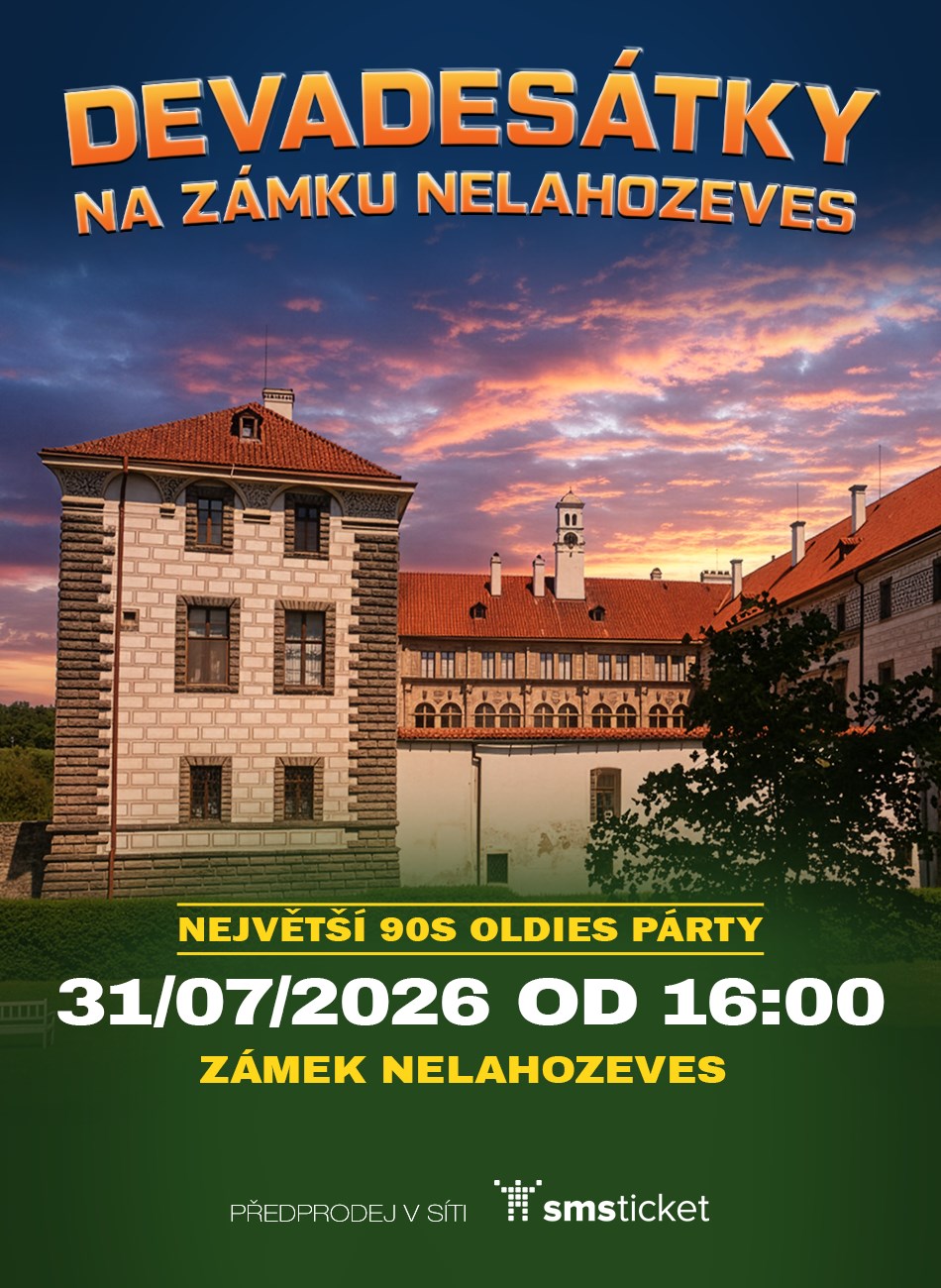 Devadesátky na hradě Nelahozeves!Přeneste se zpět do doby kazetových walkmanů, barevných legín a legendárních hitů! Čeká vás večer plný těch největších hitů 90. let v kouzelném prostředí zámku Nelahozeves! Taneční parket pod hvězdami, drinky jako za starých časů a atmosféra, která vás vrátí zpět do doby, kdy jsme pařili na Jacksona, Madonu, Haddaway, Snap!, Backstreet Boys, Eiffel 65, Dr. Alban nebo 2 Unlimited. DJs a moderátoři, co rozjedou největší hity 90. letStylová výzdoba a světelná showDresscode vítán: 90's vibes!Bar s tematickými drinkyPřijďte si užít večer, kde se hudební minulost propojí se skvělou atmosférou současné párty – na zámku, který se na jednu noc promění v místo plné hitů, tance a vzpomínek!