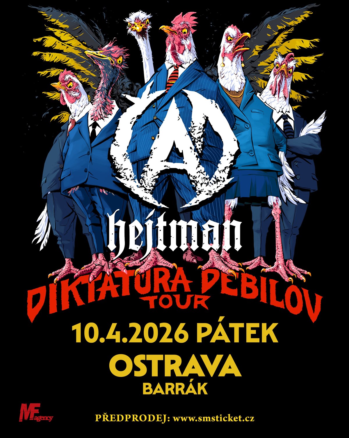 DIKTATURA DEBILOV TOUR 2026Na turné vyráží ČAD a HEJTMANDvě nekompromisní kapely, osm klubů po celé republice a jedna jasná mise –pořádná porce metalu & rock’n’rolluČekej energii, hluk, pot a poctivý nářez od první do poslední skladby.Supporty budou postupně doplněny, ale už teď je jasné, že tohle turné si nesmíš nechat ujít!8 měst2 kapely100 % živá energie