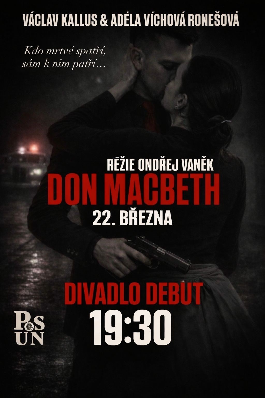 Don Macbeth je adaptací Shakespearovy tragédie. Co dělat, když nás má osud plně ve své moci? Dá se mu vzdorovat? Dá se podmanit? Nebo se mu máme slepě vydat a doufat, že pro nás nebude mít fatální následky? Nejen tyto otázky si pokládá snad každá postava tohoto dramatu. Pro některé je osud to, čeho se bojí, pro jiné je to Macbeth, koho se bojí. Přeneste se do hýřivých dob 30. let v Americe, kde ulicím vládne italská mafie, a kde jedna cikánská věštba změní život mnoha lidem..."Nezabila ho zbraň. Přesvědčila ho žena. A jedna věštba, která dala do pohybu koloběh událostí..." H R A J Í :Don Macbeth: Václav KallusLady Francesca Macbeth: Adéla VíchováMacduff: Dominik RonešLady Valentina Macduff: Aneta RůžičkováMatteo Macduff: Marek PetrovkaDon Duncan: Radek HrdličkaMalcolm: Jan KallusLennox: Martin BáraRoss: Martin BroumBanco: Aleš PetrovkaFleance, syn Bancův: Marek PetrovkaDoktor Belluci: Jiří KarasVěštkyně: Iva DrbohlavováVrah Pavarotti: Matěj SadílekVrah Angelo: Karel VenhodaKomorná Bianca: Jana BuzkováShakespeare/Macdonwald: Karel VenhodaDuchové dětí: Valérie Podškubková, Hana Duchoňová, Eliáš Hercjuk