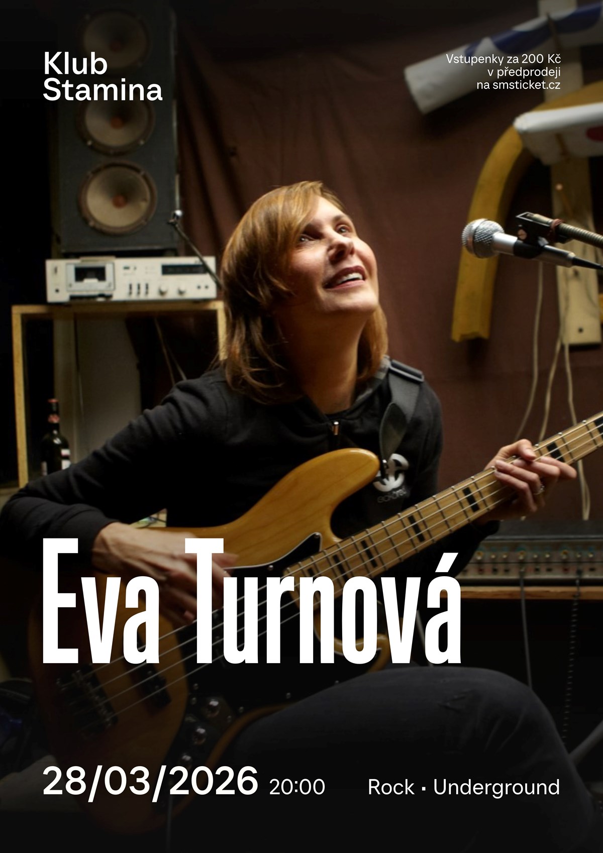 EVA TURNOVÁ je spisovatelka, hudebnice a malířka.Působila v kapelách DG 307, Šílenství Mejly Hlavsy, The Plastic People of the Universe. Spolupracovala s Lucií Piussi v hudebním projektu Terrible 2s. Vystupuje také se svou kapelou Eturnity. Svými sloupky a povídkami dlouhodobě přispívá do týdeníků Reflex, Reportér, Respekt a Deník. Doposud vydala jedenáct knih sloupků pod názvem „Turnový háj“.Její glosy jsou také posledních šest let vysílány na stanici Český rozhlas Plus v pořadu „Názory a argumenty“.Loni vyšla její první kniha povídek Evy Turnové nazvaná „V zimě se u nás netopýr“ a anglická verze sloupků s názvem “I’m Dead, leave a Message“.