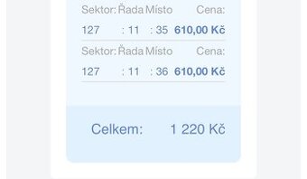 Prodám 2 vstupenky vedle sebe, sektor 127, 11 řada.