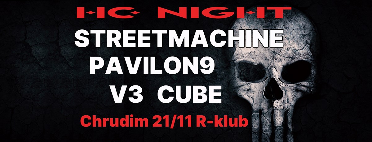 Připrav se na pořádnou nálož energie v podání ostřílenejch kapel a přijď si náma užít tenhle večírek!STREETMACHINE / hardcore-metal / PardubicePAVILON9 / hardcore-metal / ChrudimCUBE / crossover-metal / PardubiceV3 / metalcore / Přelovice