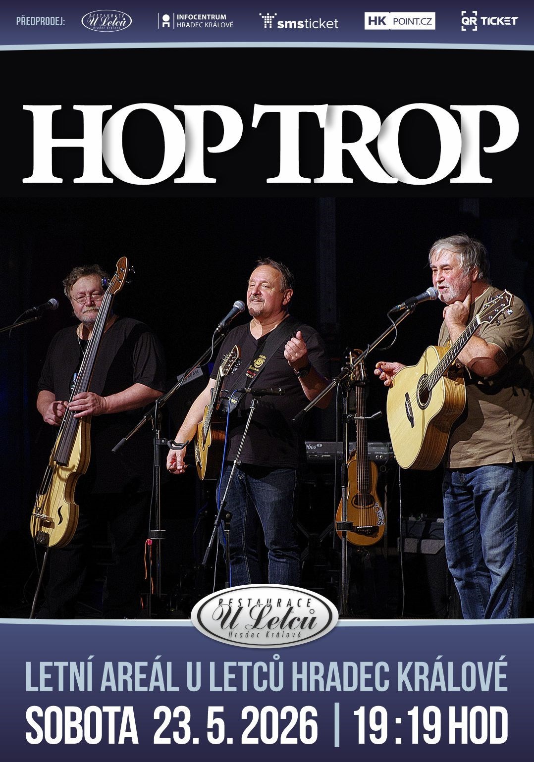 V novém představení sestaveném převážně z tvorby Ladislava Kučery, jeho syna Roberta, Jaroslava Lenka a Jaromíra Vondry zazní například písničky Silver Hill, Valouny a Obchodník s deštěm. Nebudou chybět ani známé hity jako je Amazonka, Tři kříže, Jonatán, a také vodácké písničky, které vznikly spoluprací souboru se známým spisovatelem Zdeňkem Šmídem.Pořad je proložen vlastním osobitým vyprávěním příhod ze života protagonistů i jejich populárních kolegů - známých muzikantů. HOP TROP kromě živé hudby a svých nahrávek nabízí jako novinku posluchačům na svých koncertech knížku se všemi písničkami a mnoha fotografiemi.Skupina HOP TROP je stálicí na scéně trampské hudby už plných 40 let, a od svého vzniku hraje stále v původním složení.HOP TROP byl hodnocen na festivalech Porta nejvyššími cenami za interpretaci i autorství a v roce 1988 se stal držitelem Zlaté Porty. Za album, vydané GZ Loděnice v roce 1990 s názvem „Hop Trop II“, byly hudebníkům předány „ZLATÉ DESKY“, a později „PLATINOVÉ DESKY“. Skupina HOP TROP mnohokrát vystupovala v televizních pořadech a její autorské písničky jsou denně vysílány soukromými i státními rozhlasovými stanicemi. Přijali je za své trampové, vodáci, a romantici se vztahem k cestování a přírodě. Některé zlidověly a jsou vyučovány v základních školách. Na svých cestách do USA a Austrálie HOP TROP vystoupeními potěšil i české a slovenské krajany.