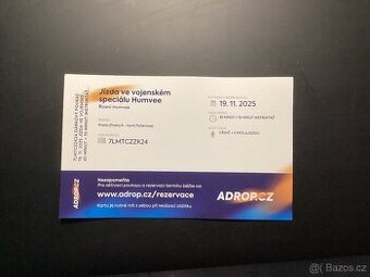 Prodám jízdu hummer hamrem pro 2 osoby a termín je středa 19.11 2025