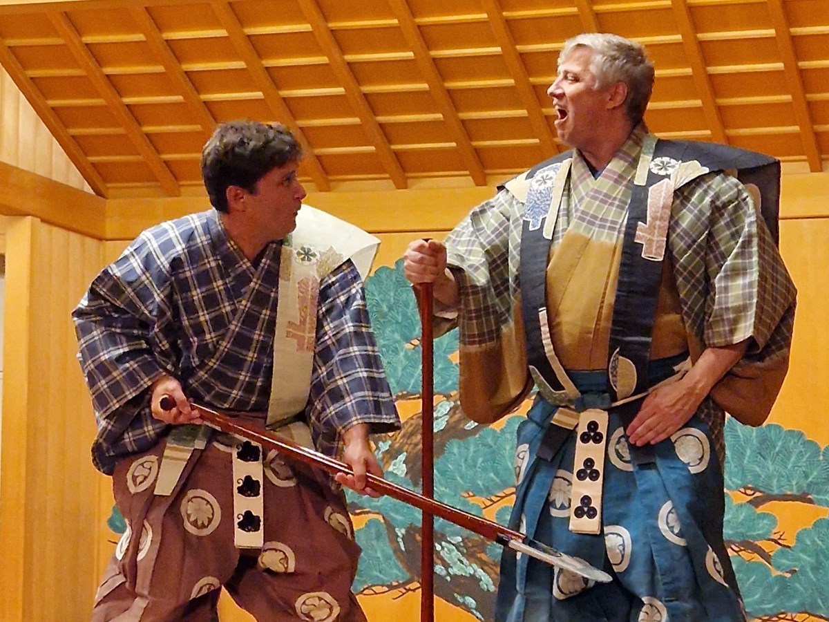 Tři tradiční japonské komedie brněnského souboru Divadlo kjógen.Program večera:Lahodný jed (Busu)Ukradená voda (Mizukake muko)Zázračný bůh Nió (Nió)