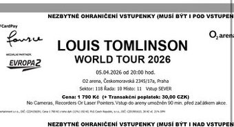 Louis Tomlinson 5.4.2026 Dobrý den, prodám vstupenku na vyprodaný koncert. Cena 1800. možnost koupě přes ticketswap.