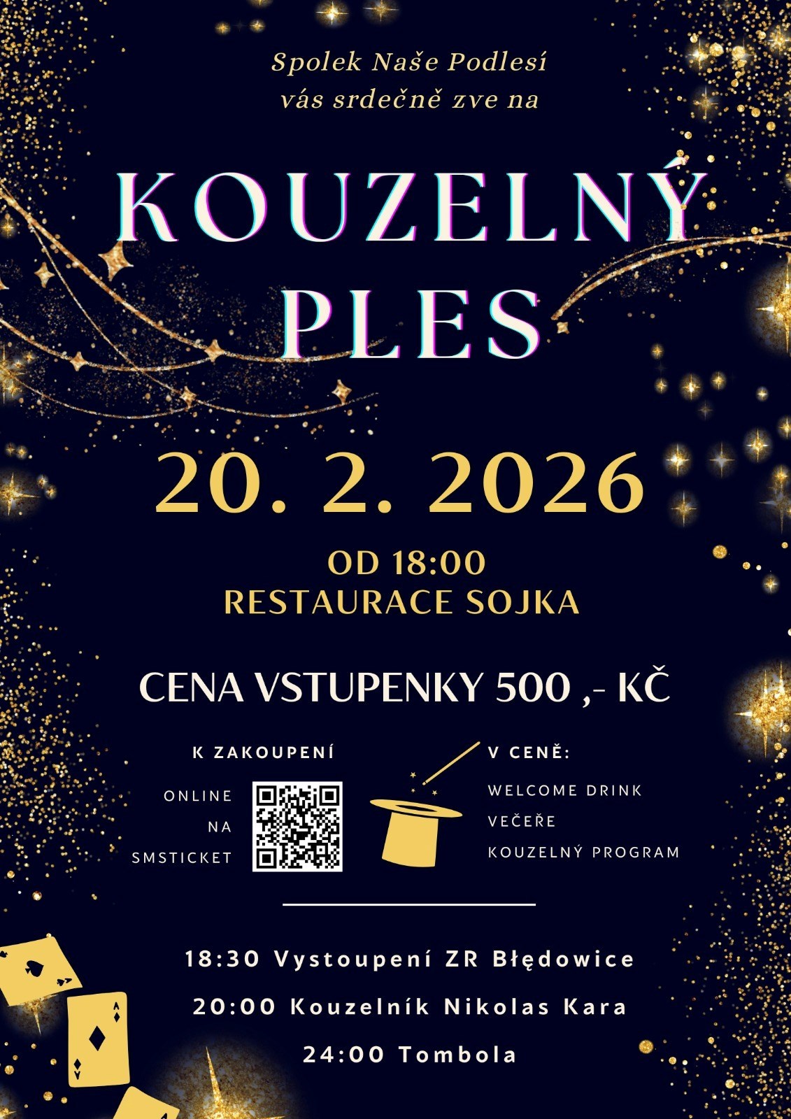 Společenský ples se vším, co k tomu patří. Taneční parket, skvělá hudba, bohatá tombola, elegantní atmosféra a taky kouzelník!