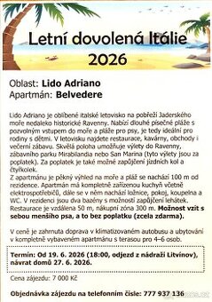 Lido Adriano je oblíbené italské letovisko na pobřeží Jaderského moře nedaleko historické Ravenny. Nabízí dlouhé písečné pláže s pozvolným vstupem do moře a pláže pro psy, je tedy ...