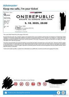 Prodám jeden lístek na OneRepublic: sektor:112 řada: 4 sedadlo:12 PC: 2190,- NABÍZÍM 998,- Důvod prodeje: celá rodina máme Covid