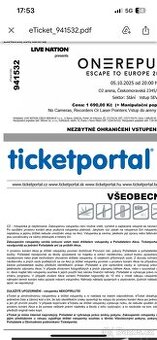 Prodám 1x lístek na Onerepublic 5.10.2025 Praha O2 Arena, na stání!