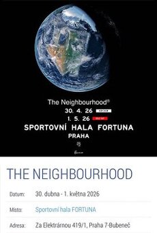 1x lístek koncert The Neighbourhood 1.5.2025 sportovní hala FORTUNA, Praha 7 sezení: sektor 602 vychod, rada 4, místo 5 - chytli jsme s kamarádkou lístky vedle sebe na koncert 30.4, proto prodávám tento - moznost KUPNÍ SMLOUVY