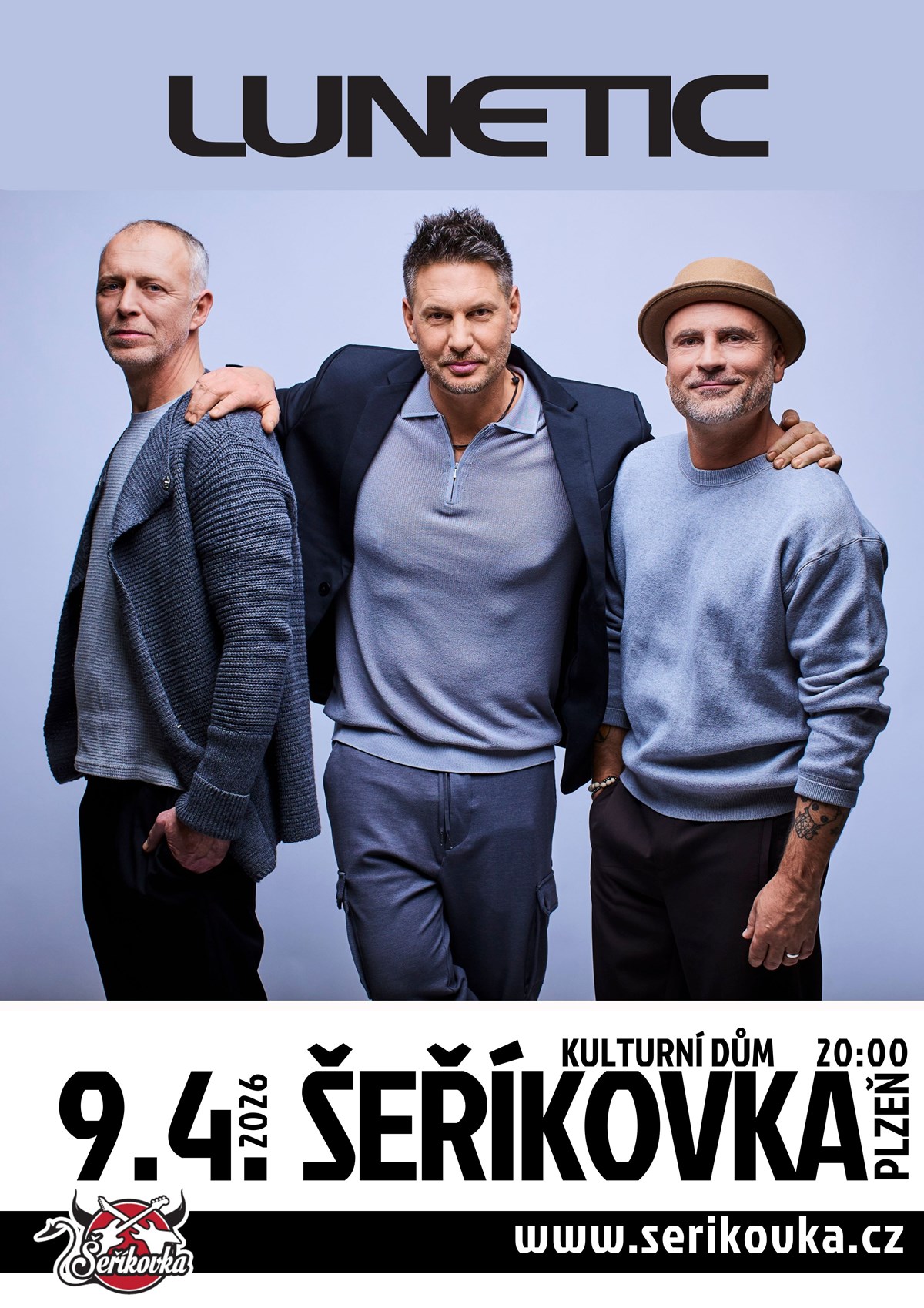 Přijďte si zavzpomínat na léta devadesátá. Legendární kapela Lunetic se vrací do plzeňské Šeříkovky.Lunetic je česká hudební skupina. Jejími členy jsou Václav Jelínek, David Škrach a Aleš Lehký. Skupina byla populární především na konci 90.let 20. Století. Kapelu založili v roce 1995 Martin Kocián a Aleš Lehký. Když členové vymýšleli název pro skupinu, napadlo je anglické lunatic (blázen, šílenec). Aby jej trochu počeštili, změnili toto slovo na Lunetic. Začínali jako taneční eurodance skupina na diskotékách a postupem času začali i zpívat. Zprvu zpívali i anglicky. V roce 1998 přišel velký zlom, když si jich všiml producent Stano Šimor. Lunetic začali zpívat česky, napsali hit „Máma“ a začali moderovat televizní hitparádu ESO. Hit „Máma“ se rychle uchytil a skupina Lunetic se dostala na přední příčky českých hitparád. Tato obliba trvala v letech 1998-2000, kdy kapela získala třetí místo na Českém slavíkovi. Skupina se rozpadla v roce 2003. Důvodem rozpadu skupiny byly drogové problémy Martina Kociána. Po rozpadu se ještě snažil uchytit Václav Jelínek, když vydal rockově laděné album Pod vodou, ale neměl úspěch. Vlastní CD také vydal Martin Kocián, ale měl ještě menší ohlas než Jelínek. Členové Luneticu se dali znovu dohromady v roce 2008. Vydali nové album se všemi svými největšími hity a DVD se všemi videoklipy. K této příležitosti uspořádali dva koncerty – v Praze a v Liberci. V roce 2011 skupina vydala zatím poslední desku Na vlnách, která je 100 % autorskou. Producentem je Václav Jelínek. V této éře kapely Martin Kocián působil mezi lety 2008 a 2013. Skupina Lunetic v roce 2018 vyjela na podzimní turné s názvem 20 let, opět v plné sestavě a nejen po Česku. Od roku 2018 kapela znovu pravidelně koncertuje po českých klubech. Jedinou změnou je poté v roce 2019 konec působení Martina Kociána, kvůli opakujícímu se problému s drogami, alkoholem a celkovému kontroverznímu působení na veřejnosti.Přijďte si zavzpomínat na léta devadesátá. Pro ty kteří si zakoupí vstupenky V.I.P. Bude připraven Welcome drink a po zvukové zkoušce možnost setkání s kapelou (fotografování a podpis)