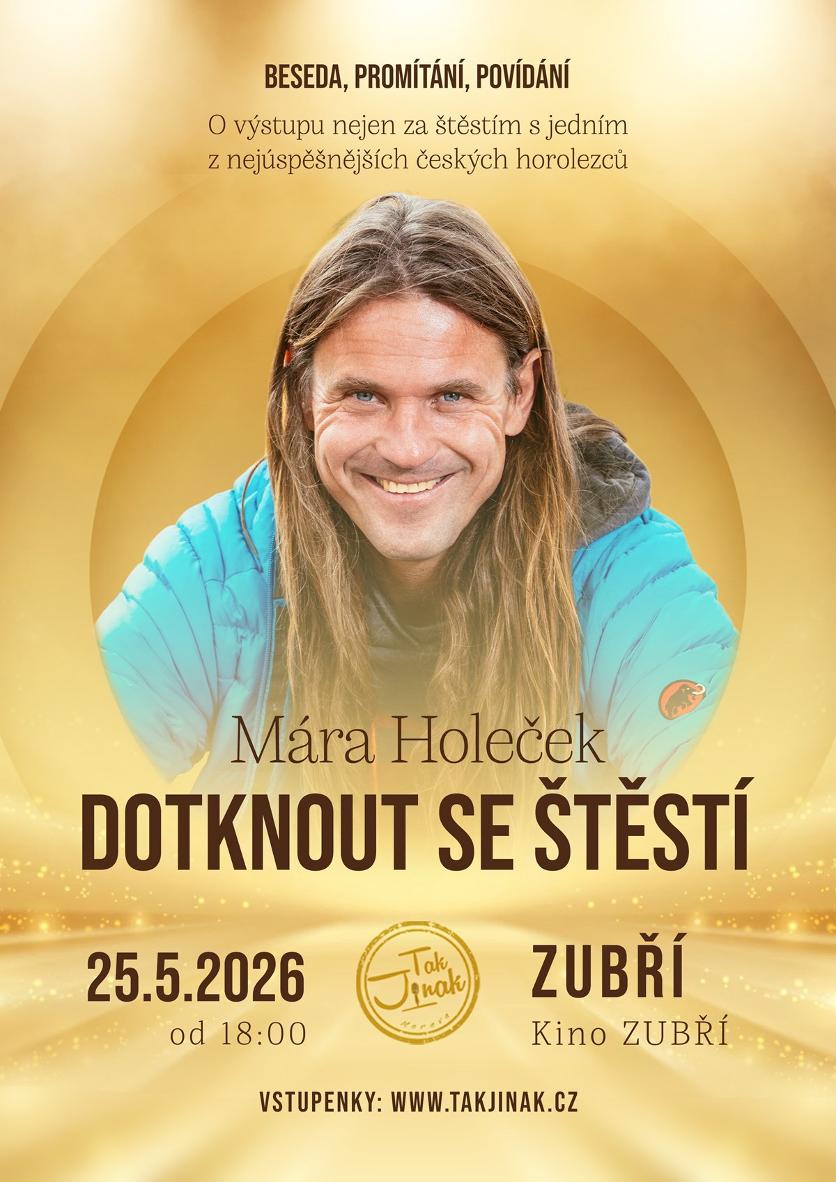 Mára Holeček - Dotknout se štěstíbeseda, promítání, povídání O výstupu nejen za štěstím s jedním z nejúspěšnějších českých horolezcůNajednou není kam dál stoupat. Jsme na vršku Sura Peak. Radost? Štěstí? Ten pocit bych tak popsal jen stěží. Co jsem vlastně čekal? Jsem unavený, zmrzlý a před sobou vidinu brutálního sestupu. Taky mám ale před sebou Himálaj jak na dlani… Existuje štěstí, dá se ho dotknout, anebo je to jen iluze a jde o něco úplně jiného? O tom, jaké to je, dotknout se vrcholů, co tomu předchází a co následuje… Povídání o touze, přátelství, splněném snu na vršku krásné hory, ale i bolesti, který přinesl jeden krok do temna. Expedice Nepál/Langtang Lirung 2024 a Ondra´s star.Marek Mára Holeček je jedním z nejúspěšnějších horolezců současnosti. Jako první Čech v historii získal hlavní cenu prestižního ocenění Piolet d'Or 2018 (Zlatý cepín) za prvovýstup alpským stylem jihozápadní stěnou jedenácté nejvyšší hory světa – Gašebrum I. Leze od svých pěti let a podle svých slov se snaží vylézt vše, co vyrostlo od výše jednoho metru nad hladinou moře až po himálajské obry. Odmítá zažitou představu, že vrcholem veškerého horolezeckého snažení je dosažení co nejvyšší nadmořské výšky. Stejně důležitými se také staly obtížnost výstupu a styl, jakým se k vrcholu dostane. Získal několik ocenění Výstupy roku ČHS a Horolezec roku.www.marekholecek.cz
