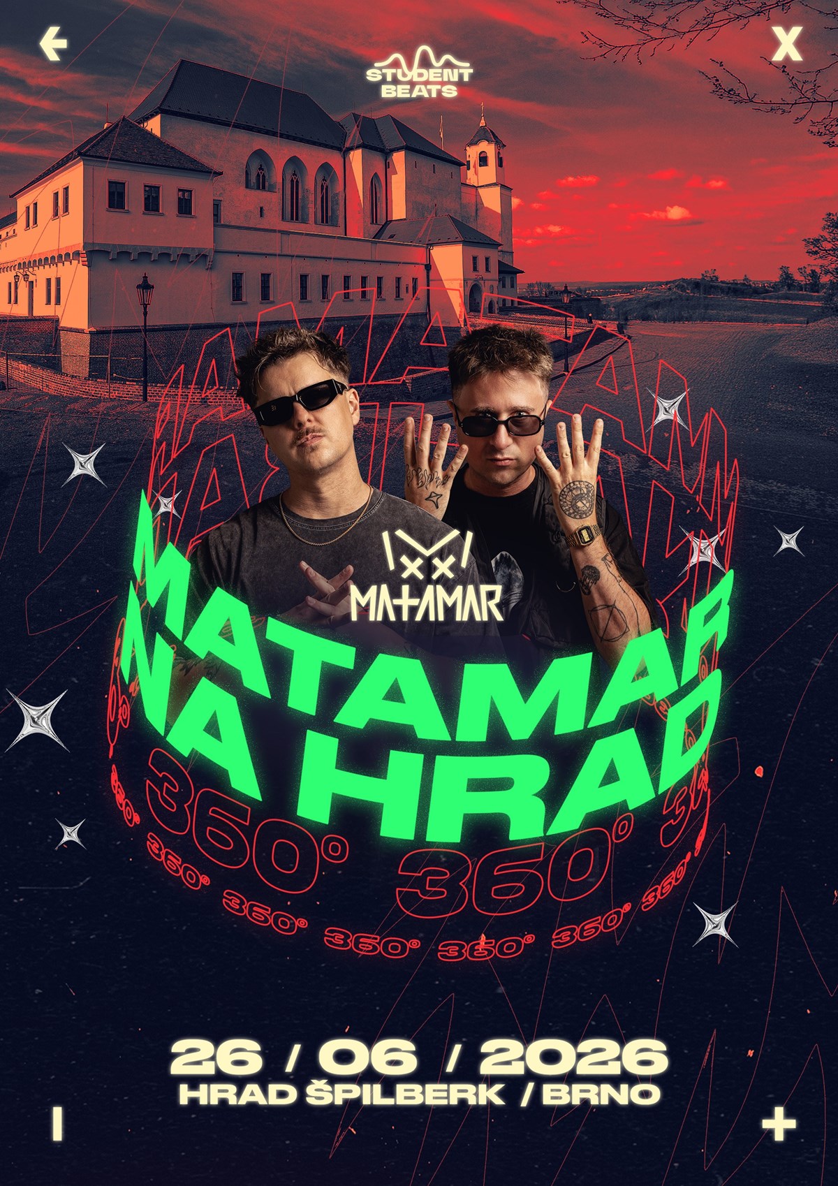 𝐌𝐀𝐓𝐀𝐌𝐀𝐑 se vrací po několika letech na brněnský hrad Špilberk! 🏰Těšte se na speciálně umístěnou 360° stage s výhledem na celé Brno 🖤Early birds vstupenky k zakoupení v předprodejní síti smsticket.cz ▌MATAMAR na hrad! [Open Air]▌Pá. 26.6.2026▌Hrad Špilberk - Západní kurtina, Brno▌Start 17:00 / End 22:00▌Official Afterparty EXIT Club BrnoL̶i̶n̶e̶-̶u̶p̶:̶𝐌𝐀𝐓𝐀𝐌𝐀𝐑Support TBA