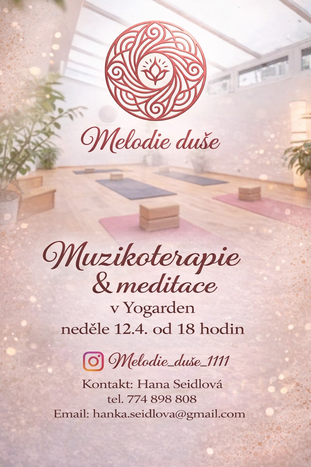 ✨ MUZIKOTERAPIE S KŘIŠŤÁLOVÝMI MÍSAMI & VEDENÁ MEDITACE V YOGARDEN Dopřejte si večer hlubokého odpočinku, zklidnění a jemné péče o tělo i mysl.Zveme vás na relaxační setkání, kde vás léčivé vibrace křišťálových mís provedou uvolněním napětí, zpomalením mysli a návratem k vnitřní harmonii. Zvuk prostupuje celým prostorem i tělem a vytváří bezpečný prostor pro regeneraci a skutečný odpočinek.Součástí večera je vedená meditace, která vás podpoří v propojení se sebou samými a hlubším vnímání přítomného okamžiku.🗓 Kdy: neděle 12.4. 2026 od 18:00⏳ Délka: 90 minut📍 Kde: YOGARDEN, Letenské náměstí 156/1, Praha 7 (přímo naproti tram zastávky Letenské náměstí)Nutná rezervace předem! Počet míst je omezen.🌿 Jak setkání probíhá?Po většinu času pouze ležíte, odpočíváte a necháváte se unášet léčivými tóny a vedenou meditací.🧘 Co s sebou?Pohodlné oblečení a ponožky.Podložky, deky i bolstery jsou k dispozici.Pro větší komfort si můžete přinést polštářek nebo škrabku na oči.✨ Vhodné i pro úplné začátečníky – není potřeba žádná předchozí zkušenost.Těším se na společné ztišení 🤍Hana Seidlovácertifikovaná muzikoterapeutka📧 hanka.seidlova@gmail.com📞 774 898 808#muzikoterapie #meditace #zvukovalazen #relaxace #Praha #vedenameditace #sebepéče #Yogarden