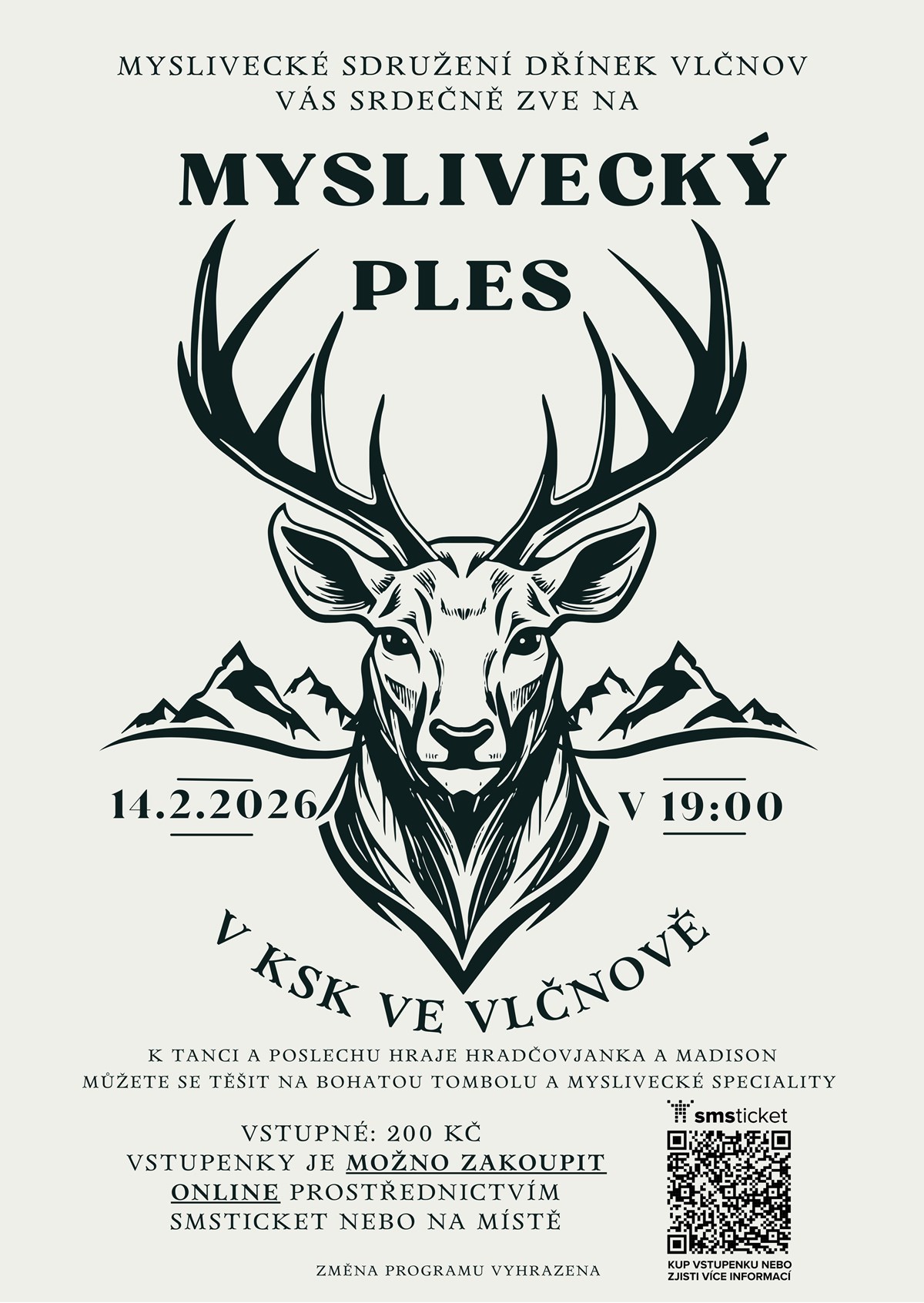 Chtěli bychom vás pozvat na Myslivecký ples, kde k tanci a poslechu bude hrát dechová hudba Hradčovjanka a Madison. Připraveno bude i něco k zakousnutí a to zvěřinové speciality.Na baru vám přichystáme samozřejmě nějaké to dobré vínečko, ale i nějaký míchaný nápoj se tam najde.