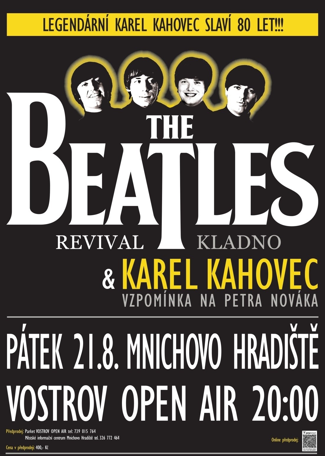 Narozeninový koncert legendárního Karla Kahovce 2026! v pátek 21.8.2026 areál VOSTROV Open Air - Mnichovo HradištěZveme vás na výjimečný hudební večer, kde své životní jubileum oslaví nezaměnitelný Karel Kahovec – ikona českého bigbítu a jeden z nejvýraznějších hlasů své generace.Na jednom pódiu se představí společně se skupinou The Beatles Revival, která koncert obohatí o nesmrtelné hity slavných „Brouků“.Můžete se těšit na největší Kahovcovy písně, mezi nimi například:Háj ModřínůPaní v černémSvou lásku jsem rozdalPoprava blond holkyA samozřejmě nebudou chybět legendární skladby The Beatles, které dodají večeru jedinečnou atmosféru.Součástí koncertu bude také vzpomínka na Petra Nováka, jednoho z největších hlasů české hudby. Připomeneme si jeho nezapomenutelné hity:PovídejHvězdičko blýskaváJá budu chodit po špičkáchNáhrobní kámenPřijďte zažít večer plný emocí, velkých hitů a pocty třem hudebním legendám.Tahle narozeninová oslava bude stát za to!