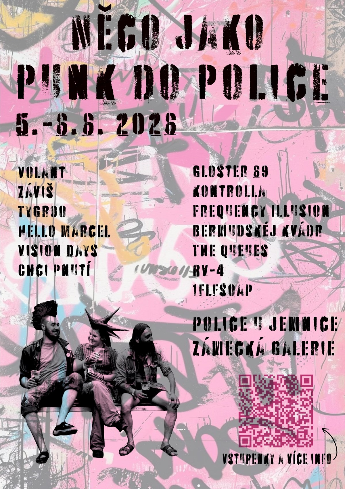 Punk do Police je mrtev, ať žije Něco jako Punk do Police !!! Chceš zažít festival bohatý na žánry? Něco komorního a současně stylovýho? Festival na zámku je pro Tebe vyladěný na míru. V malebné dědině nejjižněji na Vysočině v Polici u Jemnice. V pátek začíná zvolna něco po šesté a o program bude postaráno minimálně do půlnoci. Společným jmenovatelem prvního festivalového dne je punk, bigbít, pivní a vinná kultura. Sobota je žánrově ještě pestřejší. Očekávej, že první kapelu si dáme k obědu. Adrenalinový rock’n’roll Tě naladí na ochutnávky piv z řemeslných pivovarů i vína poctivýho rodinnýho vinaře. Po nich následuje příjemná instrumentálka a další vyladěná garážovka ze Znojma. Knížete pornofolku netřeba představovat. Jedna punkovka střídá druhou. Ta Tě roztančí a navajbuje na další počin spojující balkánskou tancovačku a rapovej jazz. Máš rád film Kouř? Ne, nepřijede Arnoštek, ale Hello Marcell !! A na závěr si sednem všichni na prdel, protože zahrají 1flflsoap. Z nich už budeš v tranzu, piva Tě sejmou a jdeš spát do stanovýho městečka hned vedle v parku. Vodu a wécka očekávej nonstop. Žádný Tojky. Jdeš do toho s námi? Vstupné je lidové, tak kupuj lístky. Těšíme se na Tebe. Pátek: Vision Days / Chci Pnutí / Gloster 69 / Bermudskéj KvádrSobota: Volant / Záviš / Tygroo / Hello Marcel / Kontrolla / Frequency Illusion / The Queues / RV-4 / 1flfsoapVSTUPNÉ: 500,- v předprodeji, 700,- na místě