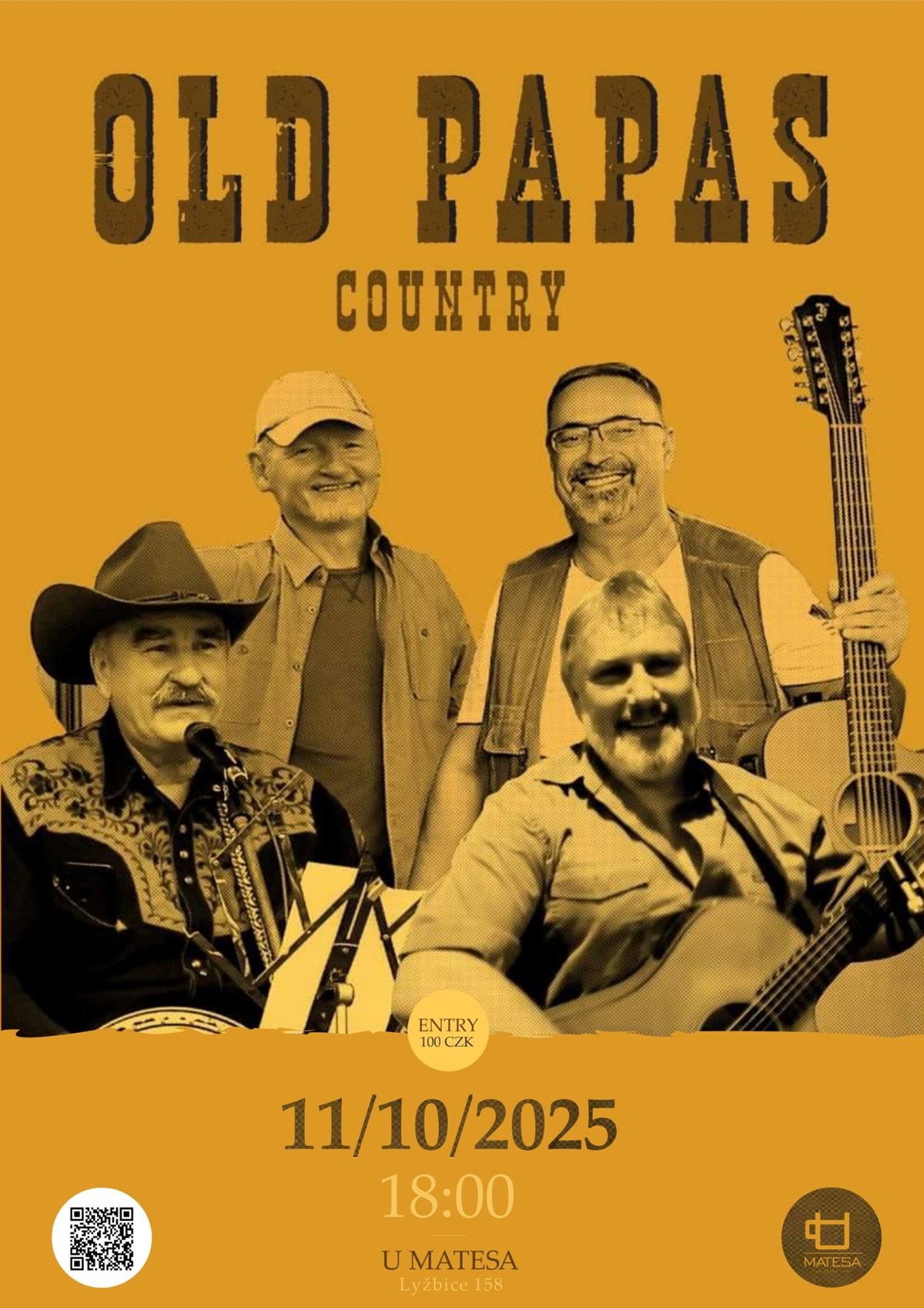 OLD PAPAS nám udělají krásný country večer. Přijďte si posedět do hospůdky na dobré pivko u dobré muzičky :)K dispozici je 60 míst. Vstupné 100,-Kč, které je možné zakoupit i v předprodeji na smsticket za stejnou cenu.Těšíme se na všechny :)