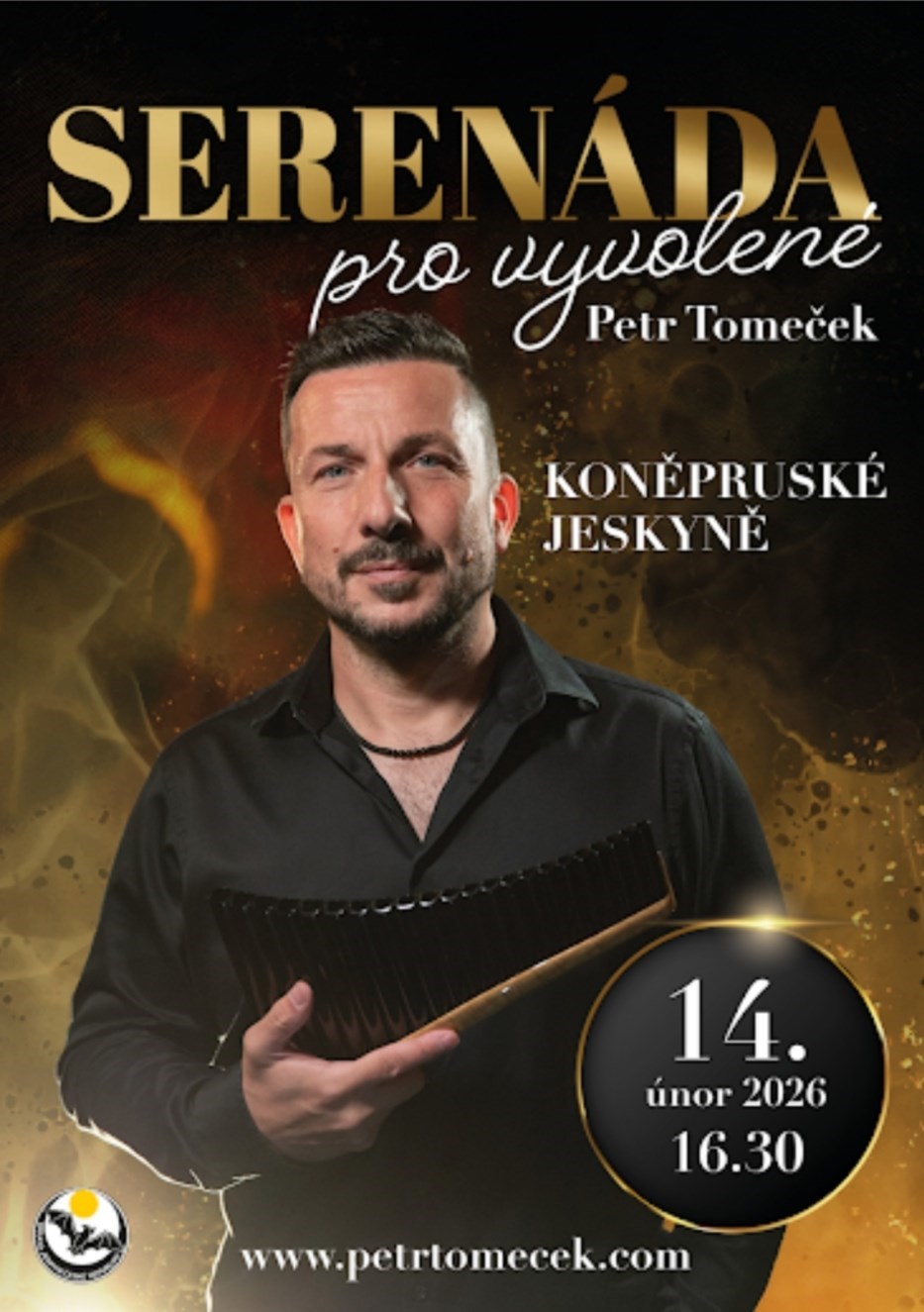 Na svátek sv. Valentýna Vás zveme na mimořádný hudební zážitek, který se odehraje v srdci přírody – v magickém prostředí Koněpruských jeskyní.Pouze prvních třicet hostů bude mít příležitost usednout do ticha podzemních sálů a nechat se unášet tóny Panovy flétny, jejíž zvuk se rozezní v prostoru, kde se čas i realita dají zpomalit.Pro tento jedinečný podvečer jsou připraveny melodie, které v podání Panovy flétny dosud nikde nezazněly. Melodie, které Vás obklopí a vnesou do hloubi Vaší duše světlo, něhu i tajemství.Každý návštěvník bude po příchodu přivítán jemným welcome drinkem, aby se naladil na atmosféru podvečera. A aby kouzlo koncertu přetrvalo i po jeho skončení, obdrží na cestu domů láhev kvalitního vína ze speciální edice, připravené právě pro mistra Panovy flétny.Tento koncert není jen událostí, ale intimním setkáním hudby, tajemna a duše.