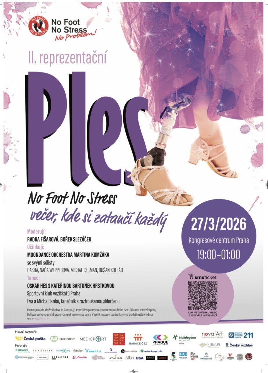 "Vysněné se stává skutečností "a my podruhé v historii České republiky máme tu čest Vás pozvat na jedinečný PLES NoFoot aneb když amputáři tančí. Akce je určena pro všechny, kteří chtějí být tento večer s námi a pořádně si to užít.Bavit nás bude MOONDANCE ORCHESTRA MARTINA KUMŹÁKA se svými sólisty. Večerem nás provede zpěvačka Radka Fišarová a Bořek Slezáček.Během večera se mužete také těšit na taneční překvapení a nebude chybět ani tradiční plesová tombola.Cílem akce je ukázat všem, že ani po amputaci život nekončí.A jelikož zatím všechny naše akce byly především o sportu, je tedy čas vyzout tenisky, pěkně se obléci a vyrazit na taneční parket. Více info na nofoot.cz
