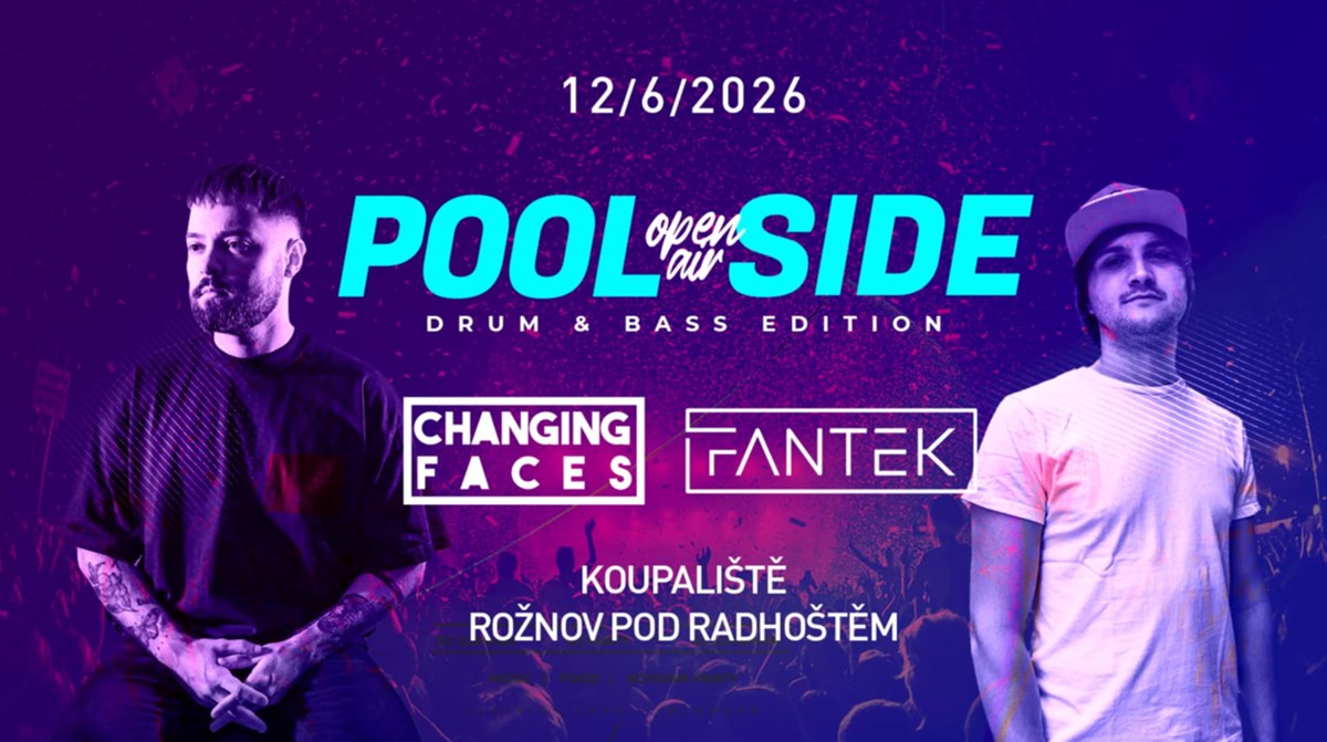 POOLSIDE 26 Koupaliště Rožnov pod Radhoštěm12. 6. 2026Léto startuje ve velkém. Připrav se na pořádnou dávku lámaných beatů, kterou jen tak nezažiješ. Slunce nad hlavou, voda na dosah, basy v těle.Line-up:Changing FacesFantekBerry + H4riboLU:ST & MatuchNikishaBreea Michal MacečekZvuk, který ucítíš až v kostech – KV2 AudioŽádné kompromisy. Čistej, silnej a precizní sound systém, co tě vtáhne doprostřed dění a nepustí.Mokrá varianta: pokud počasí nebude hrát s námi, přesouváme se do tenisové haly hned vedle koupaliště.
