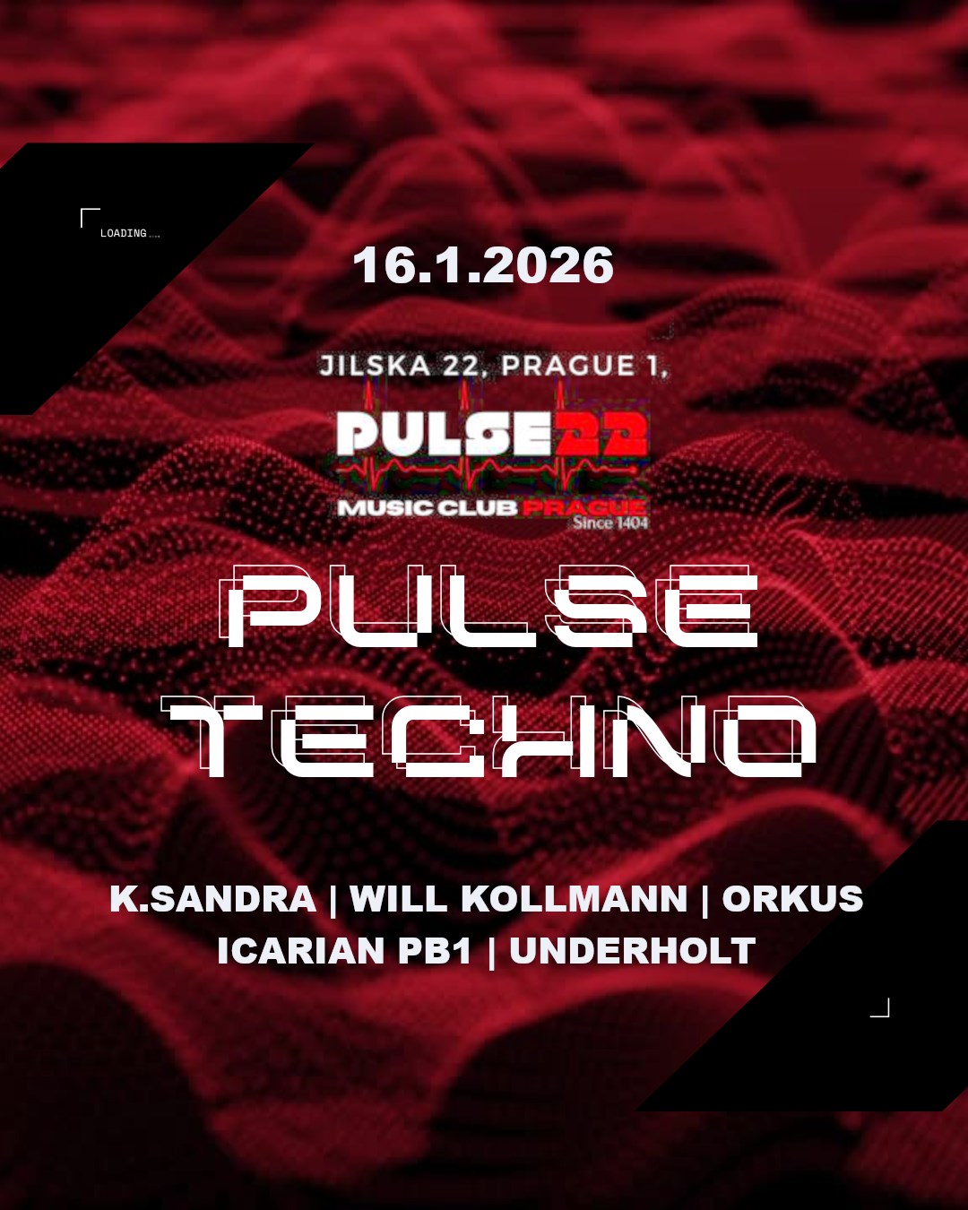 🔥 Pulse Techno @ Pulse 22 – 16. 1. 2026 🔥Nový rok teprve začal – a my ho v Pulse 22 otevíráme tak, jak to máme nejradši: Raw, Deep & Hypnotic Techno celou noc. Naše crew Pulse Techno si tentokrát pozvala dva speciální hosty, kteří patří mezi výrazné postavy české techno scény: K.Sandra a Will Kollmann. Lineup:22:00 – Icarian PB123:00 – Will Kollmann00:00 – Will Kollmann b2b Icarian PB101:00 – K.Sandra02:30 – Underholt04:00 – Orkus 👉 K.SandraDJka & producentka, která se na scéně pohybuje od roku 2014 a vybudovala si silné jméno díky svému tvrdšímu, energickému a atmosférickému technu. Hrála na akcích jako Beats for Love, Apokalypsa, Citadela nebo Svojšice a vystupovala po celé Evropě — Slovensko, Polsko, Rakousko, Německo, Slovinsko, Švýcarsko i Holandsko. Je známá svými temnými, hypnotickými sety a precizním mixem. 👉 Will KollmannDJ & producent s profesionálním hudebním vzděláním v Praze i na Pointblank Music School Ibiza. Aktivně hraje od 90. let a je známý pro svůj energický techno sound, který kombinuje groove, rytmus a technickou preciznost. Jeho sety mají silný storytelling a rychle si získávají publikum napříč kluby. 👉 Icarian PB1Zakladatel Pulse Techno a rezident Pulse 22. Raw, Deep & Hypnotic techno s výrazným vlivem devadesátek. Tentokrát i ve speciálním b2b setu s Willem Kollmannem. 👉 UnderholtRezident klubu a vinylový specialista. Ostré, temné beaty přímo z gramofonů. 👉 OrkusIkona české techno scény a dlouholetý DJ, který uzavře noc poctivým, hutným technem. 💣 Techno – Raw – Deep – Hypnotic 💣První pořádná techno noc roku 2026. Startujeme silně. 📍 Pulse 22🗓️ 16. 1. 2026🕙 Start: 22:00 🎟️ Vstupné:✅ Předprodej: 150 Kč✅ Na místě: 200 Kč