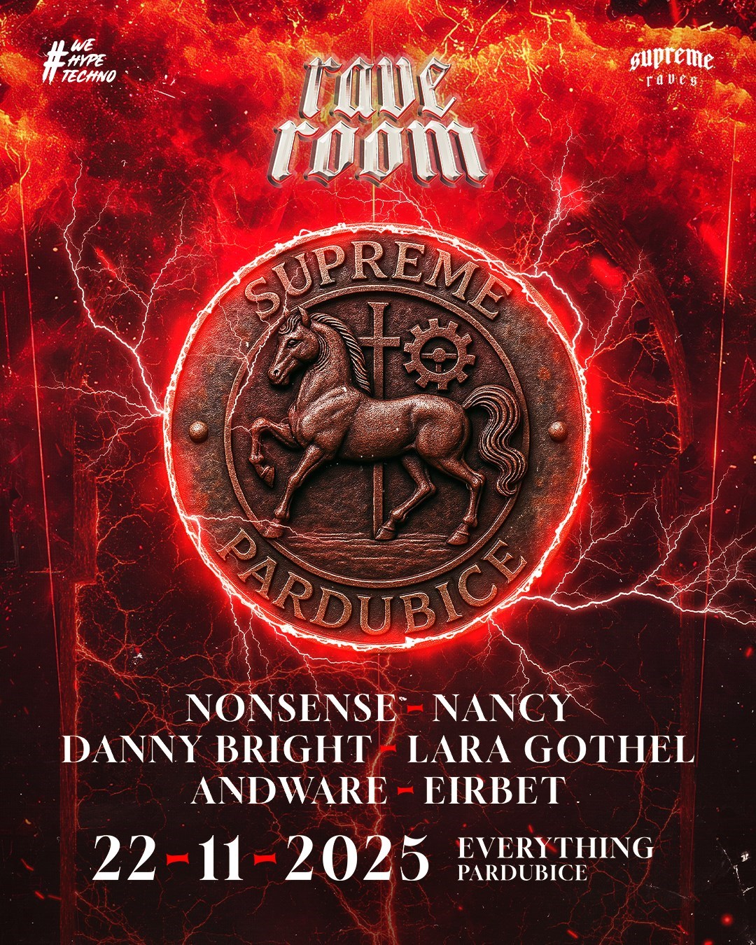 𝖘𝖚𝖕𝖗𝖊𝖒𝖊 𝖗𝖆𝖛𝖊𝖘We will visit Pardubice22. listopadu 2025 poprvé zavítáme do Pardubic. Celá Supreme Raves Crew, se už nemůže dočkat, až pohltí club Everithing svými nekompromisními beaty.Teď konečně dorazí do Pardubic ta pravá surová energie HardTechna, kterou můžete tnát z našich eventů. Těšte se na vynikající česko-slovenský lineup, laserovou klec, klub nasvícený do červené, zkrátka pořádny rave ve stylu #supremeraves #wehypetechno 𝗟𝗜𝗡𝗘 𝗨𝗣• NONSENSE /CZ• NANCY /CZ• DANNY BRIGHT /CZ• ANDWARE /CZ • EIRBET /CZ