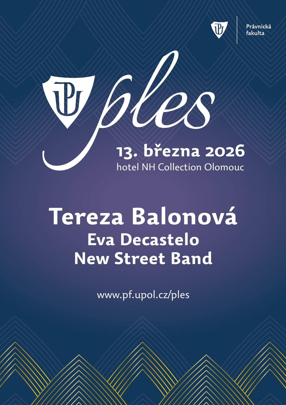 V rámci olomoucké plesové sezony máte opět možnost prožít jedinečný večer „ve společnosti“ Právnické fakulty Univerzity Palackého. Srdečně vás zveme na Reprezentační ples PF UP, který se uskuteční v pátek 13. března v prostorách hotelu NH Collection Olomouc. Záštitu nad plesem převzal děkan Václav Stehlík.Sály budou otevřeny od 18:30 hodin. Hudbu k poslechu a k tanci zajistí olomoucká formace New Street Band tvořená dvacítkou muzikantů. Vrcholem hudebního programu bude vystoupení talentované Terezy Balonové. Celým večerem vás provede půvabná Eva Decastelo.Můžete se těšit i na další body programu, jako např. na vystoupení kouzelníka Karla Pomahače, multi instrumentálního muzikanta a písničkáře Pavla Vintrlíka či na již tradiční afterparty v předsálí v podání DJ Marka.A pozor – oproti minulému roku je v ceně všech vstupenek pestrý raut, který bude k dispozici po celý večer! Samozřejmostí je i bohatá tombola a oblíbená fotobudka. –––––Studenti, zaměstnanci a absolventi Právnické fakulty UP mohou vstupenku (samozřejmě včetně rautu) zakoupit za zvýhodněnou cenu! Studenti a zaměstnanci PF UP za cenu 999 Kč (počet zvýhodněných vstupenek je limitován na 2ks/osoba, při nákupu uveďte univerzitní e-mail pro ověření statutu studenta či zaměstnance PF UP). Absolventi PF UP za cenu 1.399 Kč (počet zvýhodněných vstupenek je limitován na 2ks/osoba; absolventi budou ověřeni v databázi absolventů PF UP).Vstupenky (zdarma či za zvýhodněnou cenu) je možno získat i v rámci partnerství plesu – podrobnosti na webových stránkách www.pf.upol.cz/ples.