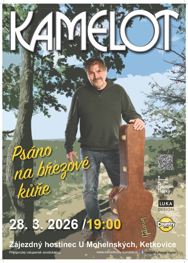 Speciální první jarní koncert - Roman Horký a Kamelot - "Psáno na březové kůře III."Už od dětství, kdy jsem začal jezdit na potlachy a ohně byla mou nejoblíbenější hospodou ta „U Mohelských“ v Ketkovicích. Pamatuji si moc dobře na pana Mohelského staršího, jak mi nosil „zónko“ a stará paní Mohelská měla vždy připravený špičkový maďarský guláš. Řízky smažila v malém kastrůlku na domácím sádle a k němu se podával jedinečný bramborový salát bez majonézy (brambory, ocet, cibule, okurka, hořčice, sůl a pepř). Jak jsem dospěl, nebyl žádný čundr do naší pooslavské krajiny, bez toho aniž bych tuto „domácí knajpu“ se svými kamarády nenavštívil. Když starý pan Mohelský zemřel, převzal otěže hospodského jeho syn Jirka, a pokračoval v otcových šlépějích. S Kamelotem, Trosečníky, T. O. 60. Míle a dalšími trampskými osadami jsme se tam často scházeli a hrávali vedle výčepu u věšáků, a zatímco na kamnech se sušily promoklé battledressy, celty a košile, my čekali na čas, kdy půjdeme do Rapotic na vlak. Tam dřímá i prapůvod vzniku mé písně „Psáno na březové kůře“. Když vyšlo naše první album „Zachraňte koně“, šli jsme tuto významnou událost oslavit právě tam. Stali jsme se miláčky rodiny Mohelských a taky některých ketkovických dívek, které si nás nad ránem rozebraly a ukládaly nás s radostí do svých příbytků. Dokonce i televizní medailon Kamelotu „Duhová cesta“ z roku 1994 se neobešel bez záběrů z ketkovické hospodské zahrádky. Už tehdy jsme s Bůčkem spřádali plány, že bychom v sálku pohostinství odehráli regulérní koncert.Vzhledem k velkému zájmu zahraje a zazpívá v sobotu 28. 3. 2026 skupina Kamelot na kultovním místě našeho trampského bratrstva již potřetí. Sál pohostinství je malý a má kapacitu pouhých 180 míst, tak rozhodně neváhejte a zajistěte si vstupenky, tedy pokud chcete s námi „U Mohelských“ prožít tuto významnou událost. Začínáme v 19:00 h. Před koncertem si můžete projít některá posvátná místa okolo řeky Oslavy, třeba i ty, o kterých zpívám ve svých písních (Ketkovák, Kavčice, Vydrův Mlýn, Malá skála, Skřipina anebo navštívit nedaleké Rapotice či Lesní Jakubov). Po skončení tohoto koncertu si dáme společně pivo a třeba ještě zazpíváme u věšáků (které tam již nejsou) „Březovou kůru“ a rozezníme ty staré původní parkety, po kterých kráčely odřené pohorky našich kamarádů… Zatím ahoj! Roman