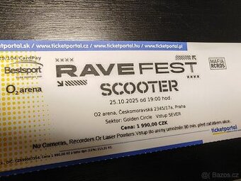 Prodám vstupenku na Scooter na RAVE Festivalu do sektoru Golden Circle. Akce se koná 25. října 2025. Jedná se o fyzickou vstupenku, takže je ideální osobní předání nebo zaslání poštou.