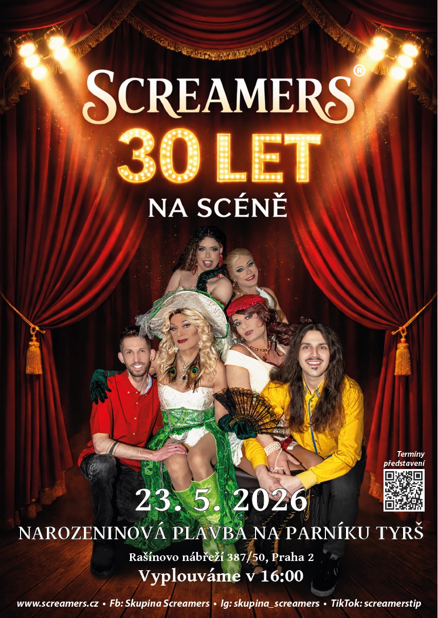Skupina Screamers opět vyráží na plavbu po Vltavě!Čeká na vás interaktivní komponovaný program Skupiny Screamers a jejich hostů! Pojďte s námi přivítat léto a užít si moře zábavy!Těšíme se na vás!