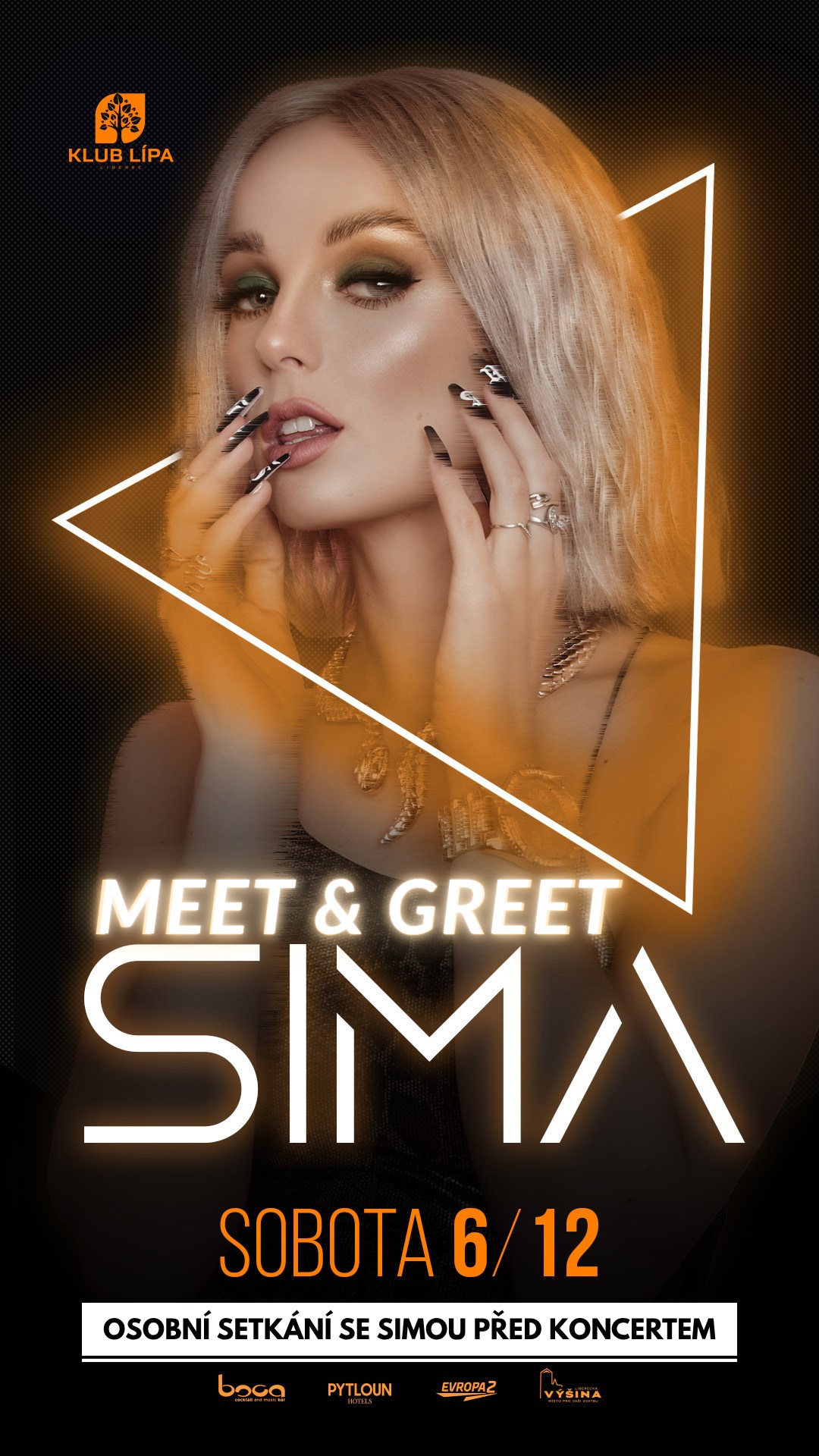 MEET & GREET se SIMOU!Sobota 6/12Klub LípaOsobní setkání se Simou před koncertem – jedinečná šance být u toho zblízka.Tuhle sobotu zažiješ večer, na který nezapomeneš.Upozornění: Meet & Greet není vstupenkou na koncert. Vstupenku na koncert je nutné zakoupit zvlášť.