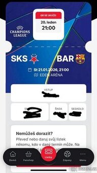 Dobrý den , prodám 2 lupeny- vstupenky na zápas ligy mistrů který se koná 21.1.2026 ve 21:00