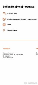 Prodám 2 lístky na koncert Sofiana,dcerka bohužel nemůže,tak narychlo prodáváme dále.Při zájmu mě kontaktujte jen e-mailem… zukalovaantonie@gmail.com jináč neodpovídám,děkuji.