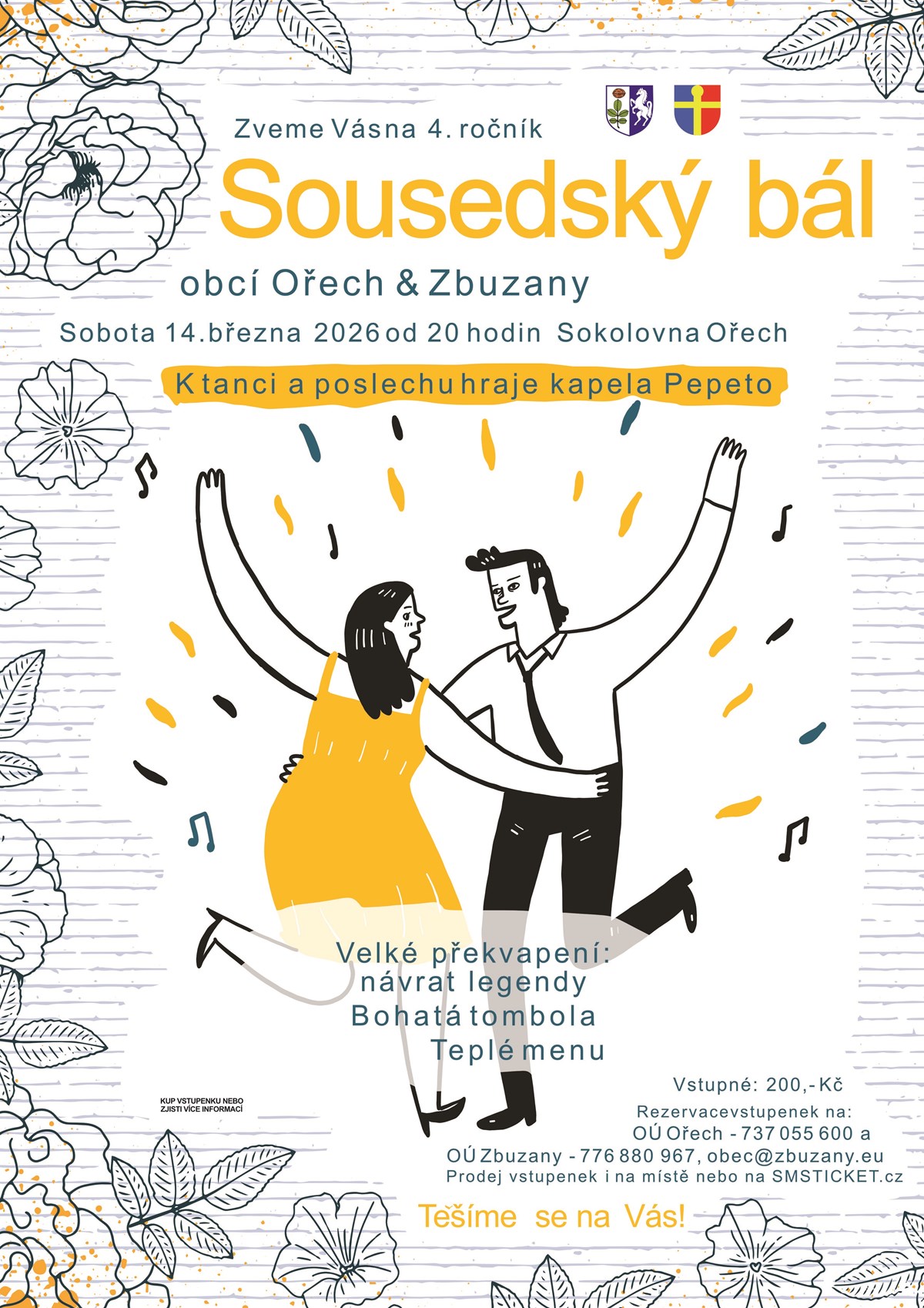 Srdečně zveme na 4. ročník sousedského bálu!Přijďte si užít večer plný hudby, tance a dobré nálady. K tanci a poslechu zahraje kapela Pepeto. Připravena bude bohatá tombola s lákavými cenami. Občerstvení zajištěno. Doprovodný program s velkým překvapením.Těšíme se!