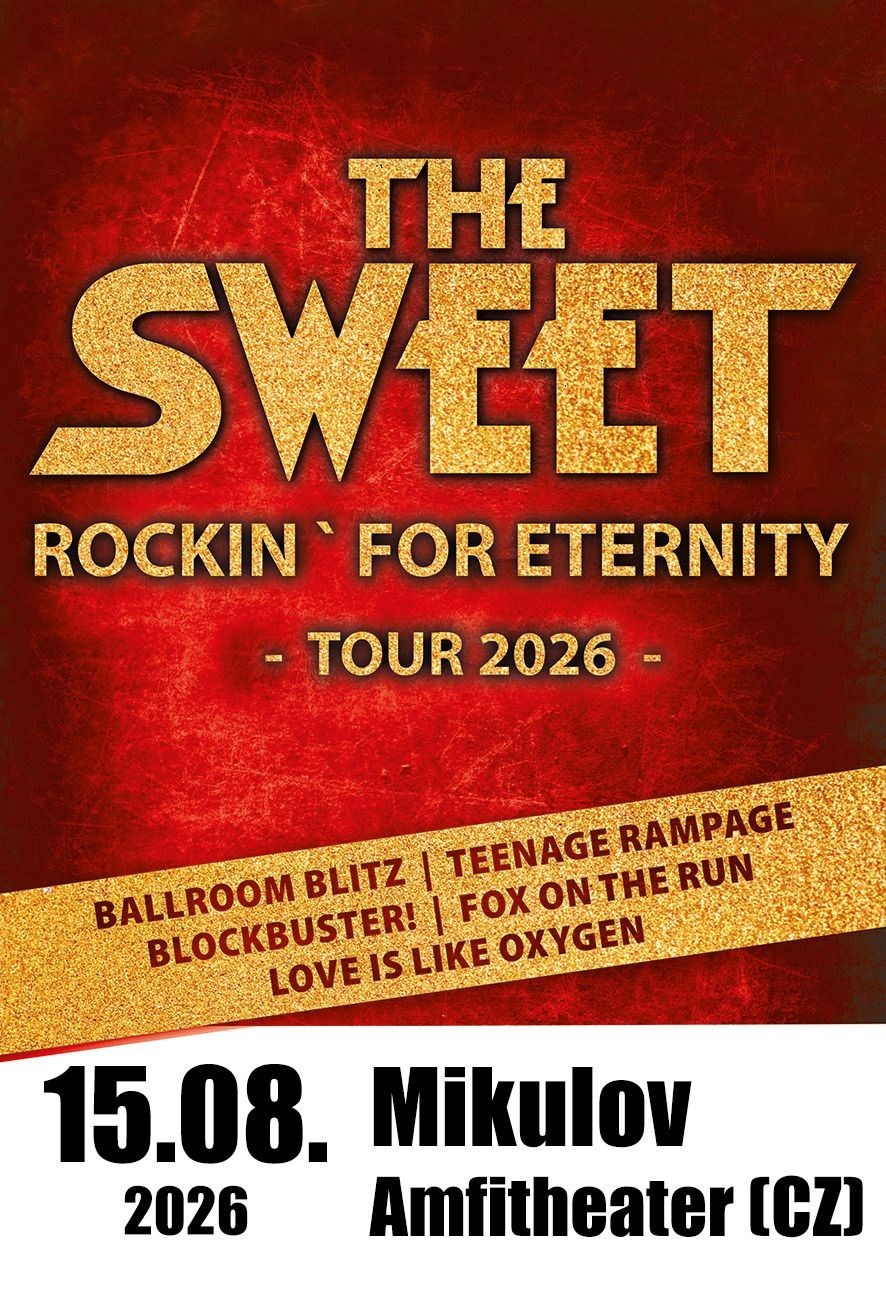The Sweet /UK/ v MikulověLegendární britská kapela THE SWEET, která definovala glam rock a prodala přes 30 milionů alb, si pro svůj exkluzivní koncert v roce 2026 na Moravě vybrala Mikulov. 15. srpna 2026 vystoupí pod širým nebem v malebném Amfiteátru Mikulov.„Z obrovského množství nabídek jsme si v ČR vybrali právě Prahu a Mikulov. Chceme hrát tam, kde to má duši a atmosféru,“ říká Willi Wrede manažer kapely pro střední Evropu.The Sweet přivezou nejen výběr nesmrtelných hitů jako Ballroom Blitz, Fox On The Run, Love Is Like Oxygen, ale i nové skladby z úspěšného alba FULL CIRCLE, které se v roce 2024 vyšvihlo na 19. místo prestižních Media Control Charts.Kapela koncertovala v ČR pod hlavičkou agentury Brnokoncert již v roce 2017 v Praze a Brně, o rok později oslavila 50 let od svého vzniku v brněnském Sono Centru.V Mikulově bude předskakovat The Sweet předkapela, jejíž jméno bude zveřejněno na jaře 2026.Pořadatel vybere předkapelu na základě soutěže – kontakt pro zasílání demosnímků je mersey@volny.cz.