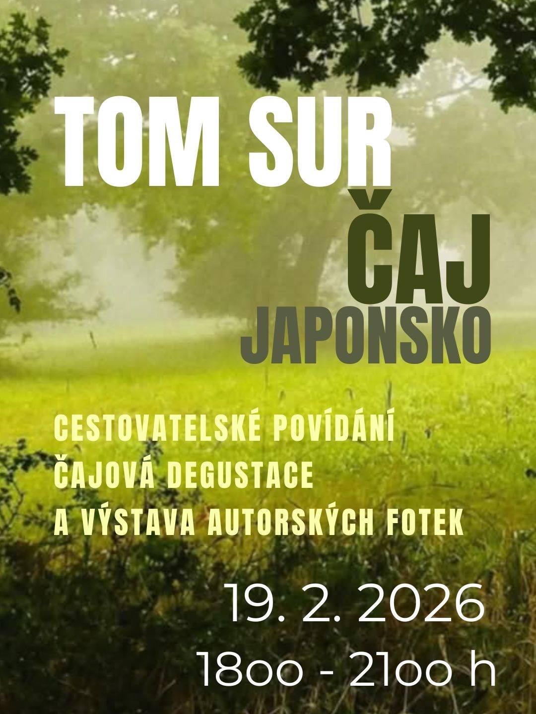 Tom SurZ cesty síla - Duše poutníkCvaká_lista oka_mžikůKecál_ista při_běhůZalej_lista čaj_ÓMůpřiveze čaje a čerstvé zážitky ze svého nedávného opětovného putování po Japonsku.Povídání a čajování doladí prodejní výstava autorských fotek, opravdu jedinečný zážitek v komorním duchu max 15 lidí, který si nenechejte ujít.
