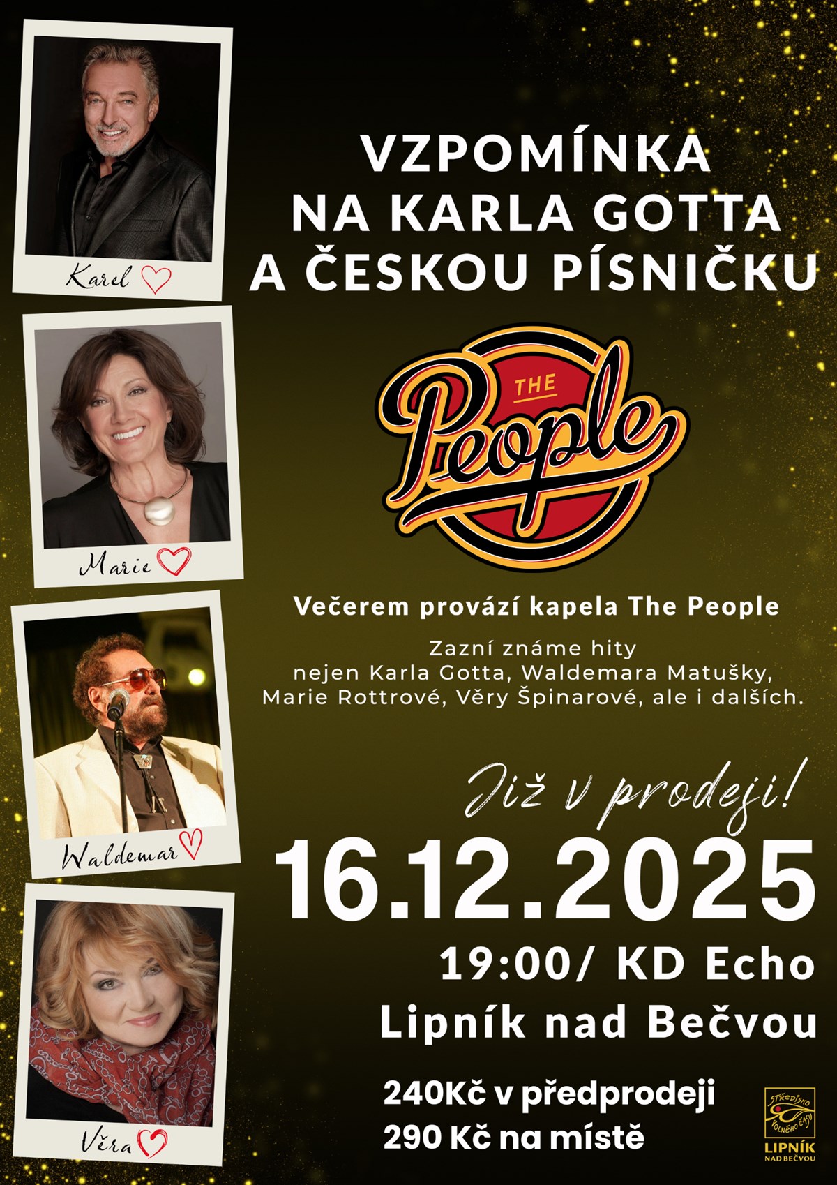 Vánoční koncert jako vzpomínka na velikány české hudební scény. Zazní písničky nejen od Karla Gotta, ale i od Marie Rottrové, Hany Zagorové, Věry Špinarové a dalších. Večerem provede fenomenální brněnská kapela The People se svou početnou dechovou sekcí.